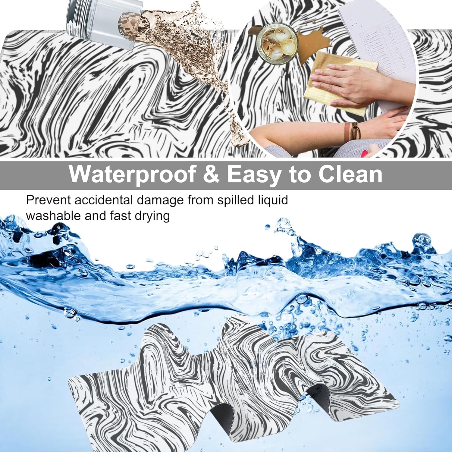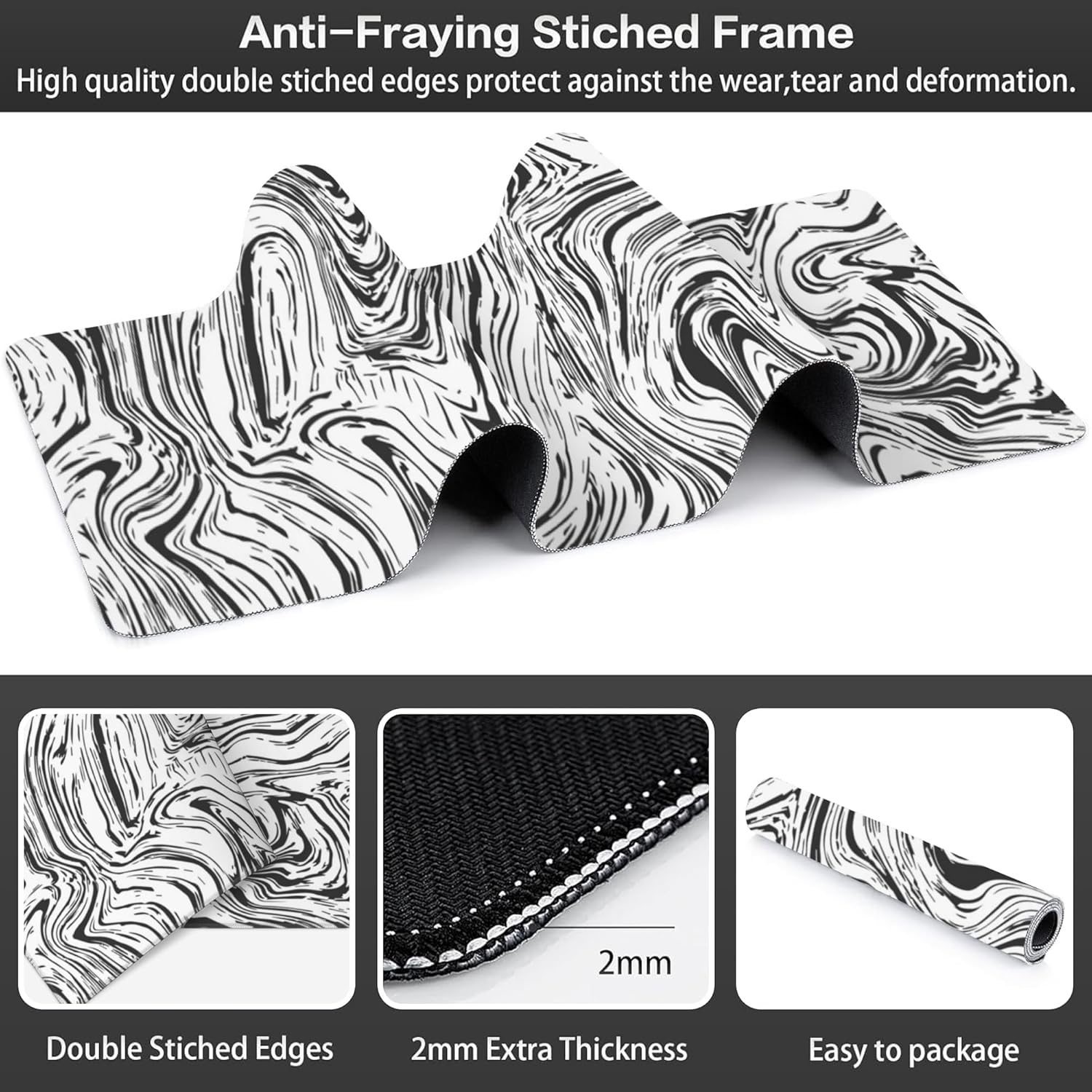 Black and White Marble Desk Mat,Large Abstract Marble Texture Gaming Keyboard Mouse Pad,Non-Slip Rubber Base Desk Pad Thick Stitched Edges Waterproof Mousepad Mouse Mat 31.5"x11.8"