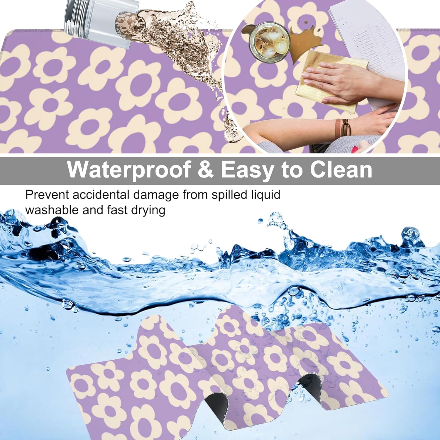 Purple Groovy Flowers Desk Mat,Large Vintage Floral Gaming Keyboard Mouse Pad,Non-Slip Rubber Base Desk Pad Thick Stitched Edges Waterproof Mousepad Mouse Mat 31.5"x11.8"
