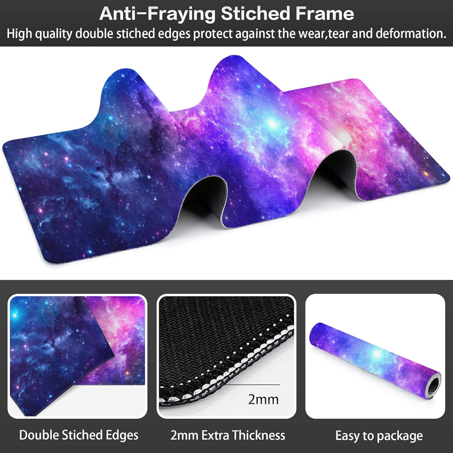 Deep Universe Space and Stars Desk Mat,Large Galaxy Space Gaming Keyboard Mouse Pad,Non-Slip Rubber Base Desk Pad Thick Stitched Edges Waterproof Mousepad Mouse Mat 31.5"x11.8"