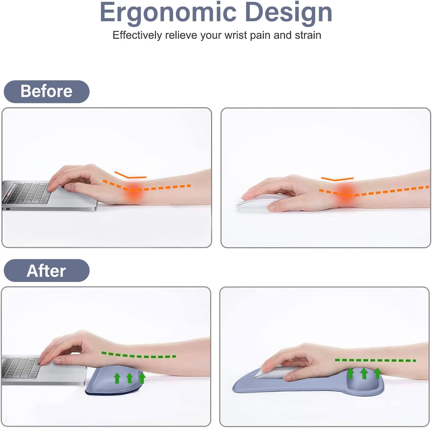 - Ergonomically designed with breathable/durable neoprene cloth and raised memory foam. Efficient for easy typing & pain relief. Offers soft support to relieve pressure and pain of your wrist, keep your wrist in a natural and comfortable state.