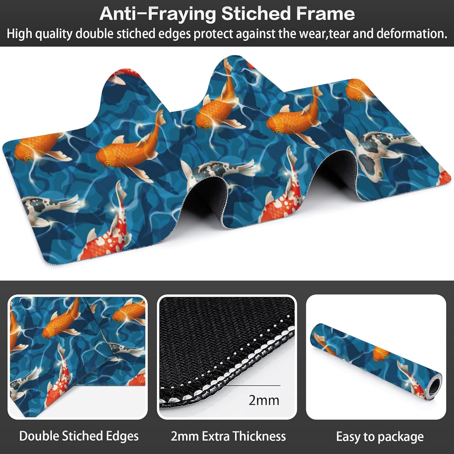 Koi Carps Desk Mat,Large Swimming Koi Fish Gaming Keyboard Mouse Pad,Non-Slip Rubber Base Desk Pad Thick Stitched Edges Waterproof Mousepad Mouse Mat 31.5"x11.8"