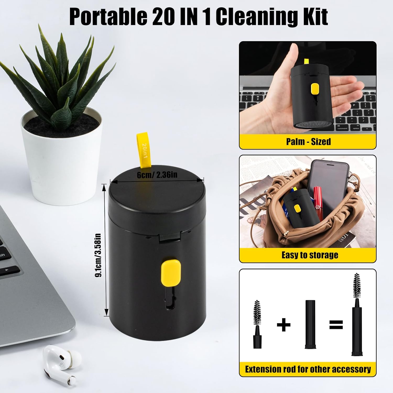 walrfid Laptop Phone Screen Cleaner Kit, Computer Keyboard Brush Cleaning Spray for iPhone AirPods MacBook iPad, 20-in-1 Electronic Device Clean Tool for Camera Earbud Car Screens (Black)
