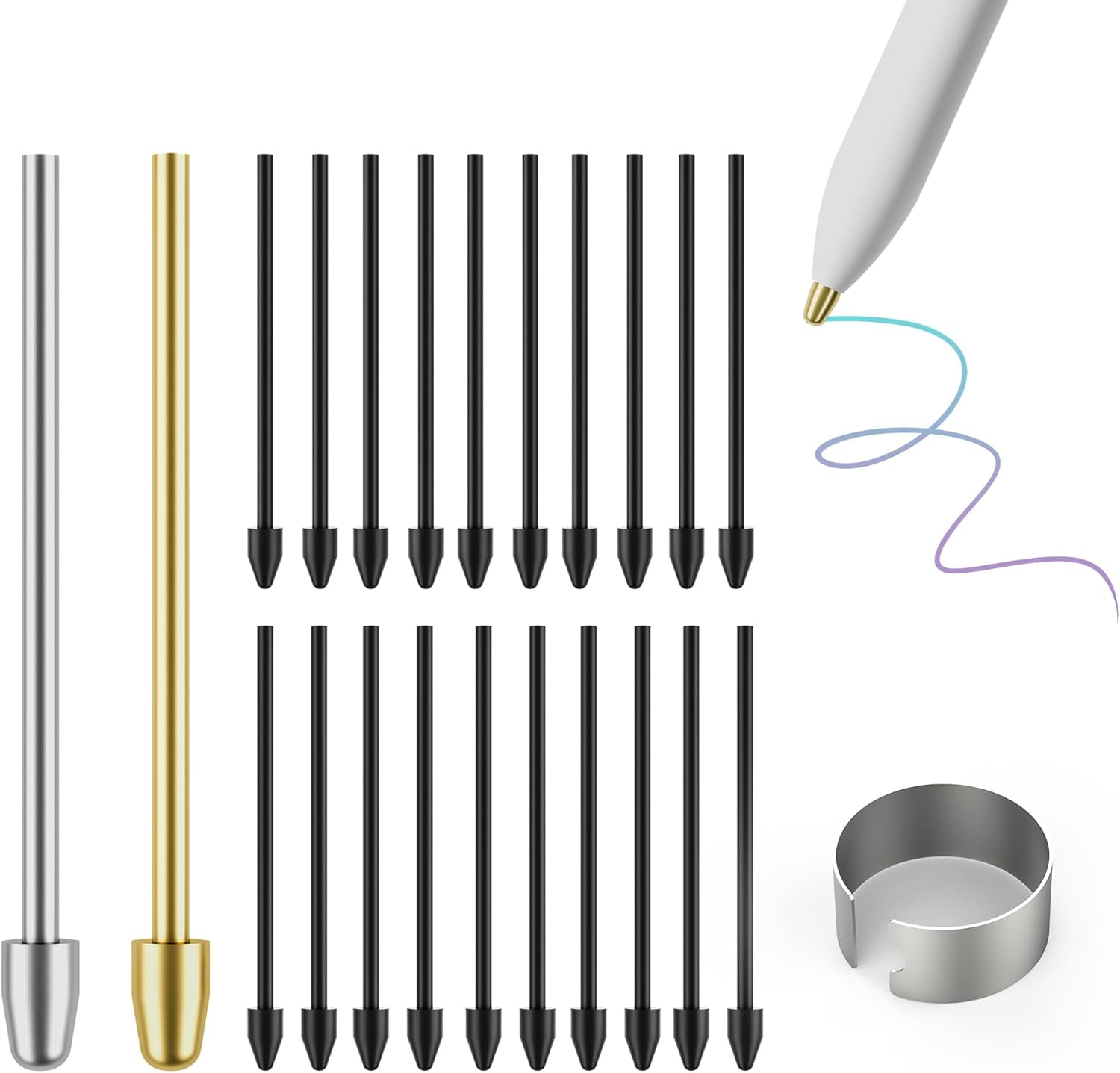 - ăPackage Detailsă:You will receive 2 pcs metal remarkable 2 pen tips with 10 pcs plastic nibs/refills and a nibs replacement tool.(Tip: For your experience, it is recommended that you change the pen tip after 5 to 8 weeks.)