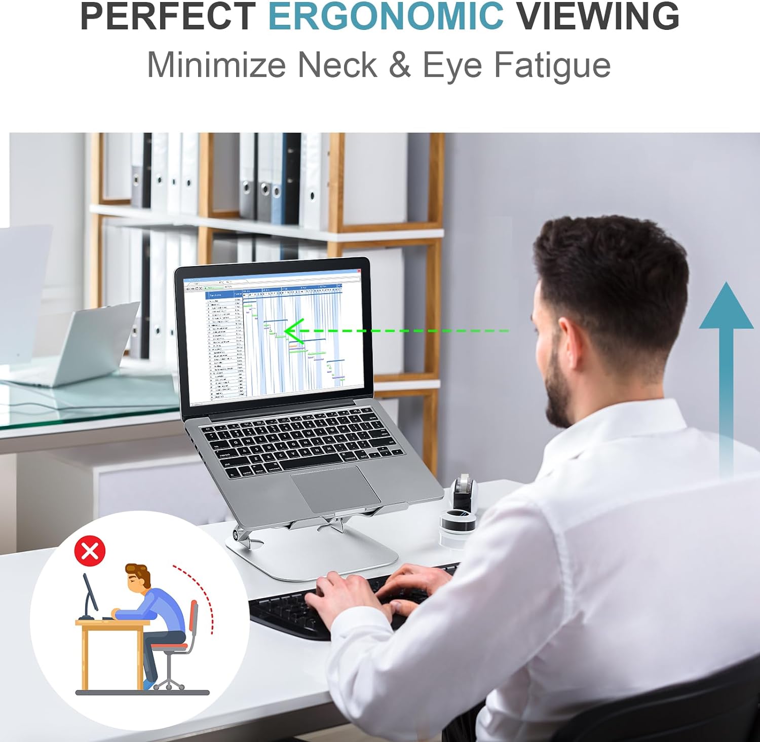 - [Perfect Ergonomic Viewing]- Our laptop stand is designed to provide the perfect ergonomic viewing. By elevating the screen to an appropriate height, our laptop cooling stand can help you avoid discomfort in the neck caused by looking down and reduce strain on your eyes from being too close to the screen.