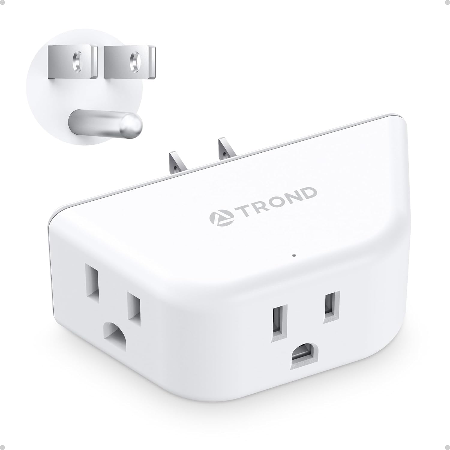TROND Outlet Extender, 3-Prong Grounded Wall Plug Splitter, 3 Way Angled Outlet Adapter, Cruise Ship Essentials, Plug Expander with 3 Electrical Sockets for Bathroom, Kitchen, White