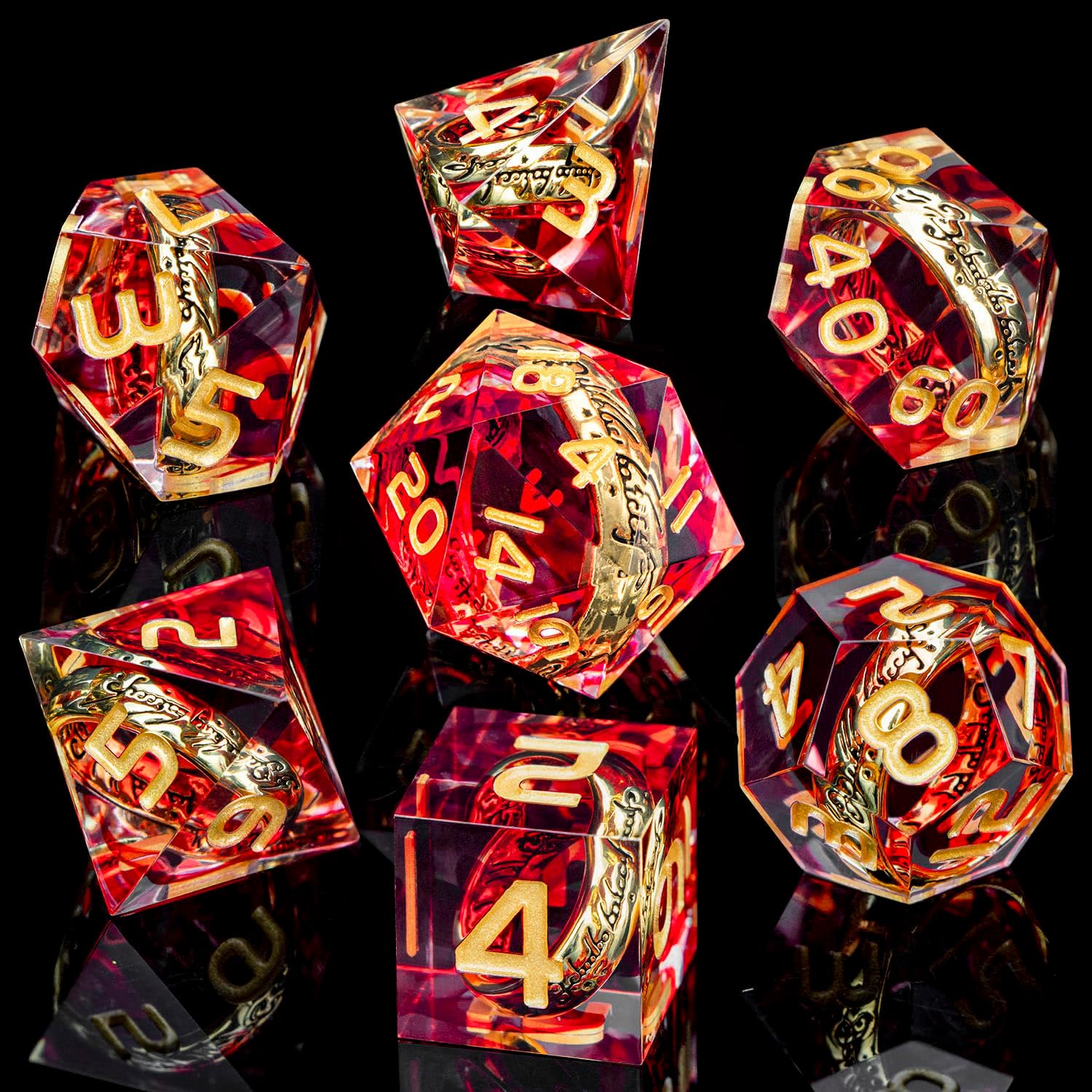 Magic Golden Ring DND Dice Set Sharp Edge Red Resin Dice with Box, for use with Dungeons Dragon RPG D&D Tabletop Games Lord D and D Polyhedral Dice Set