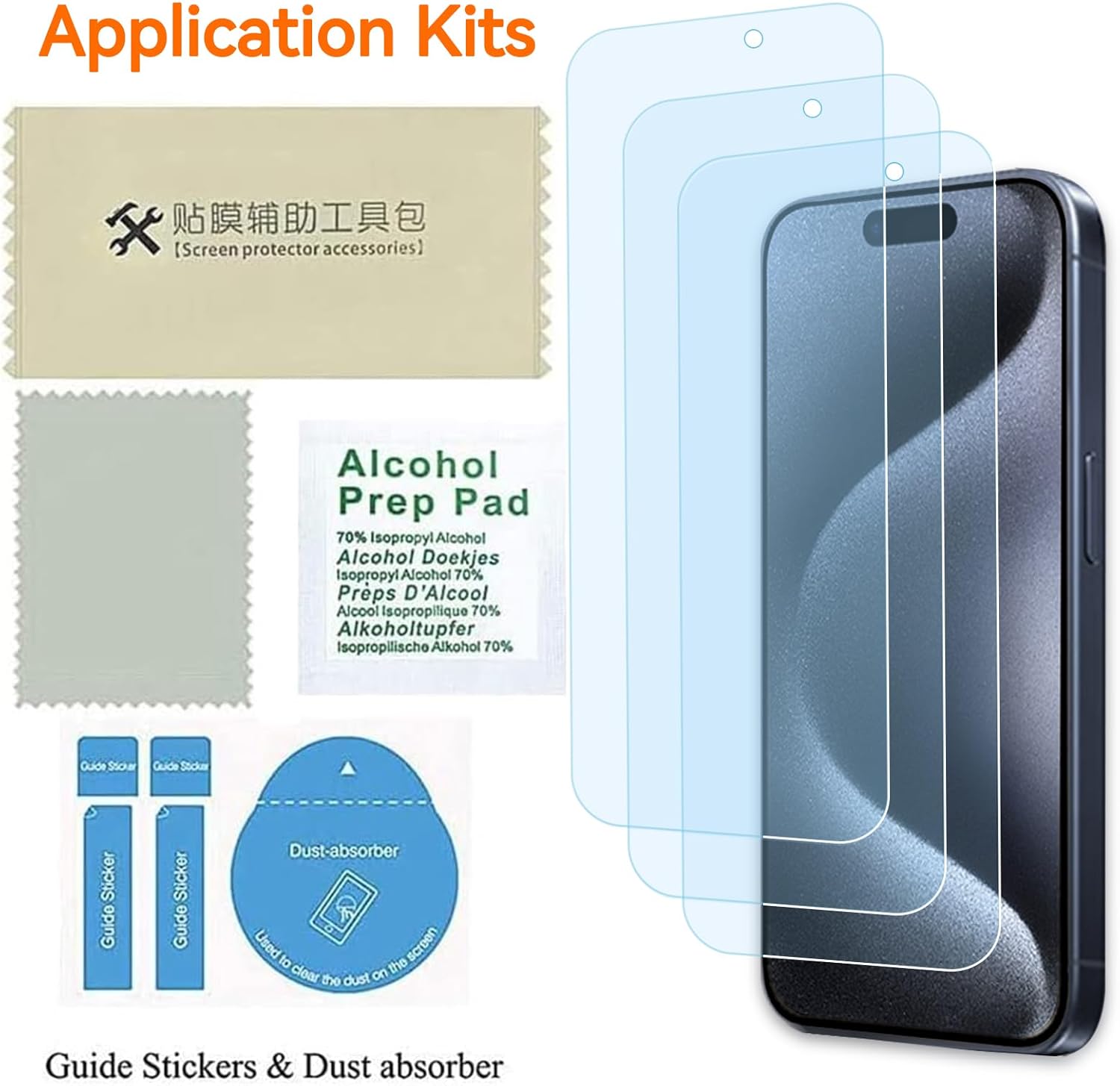 - ă3 Pieces PackageăThis Blue Light Screen Protector is packed in 3 pieces âCompatible with iPhone 15 iPhone 15pro to offer more choices for your replacement of phone screen protector.
