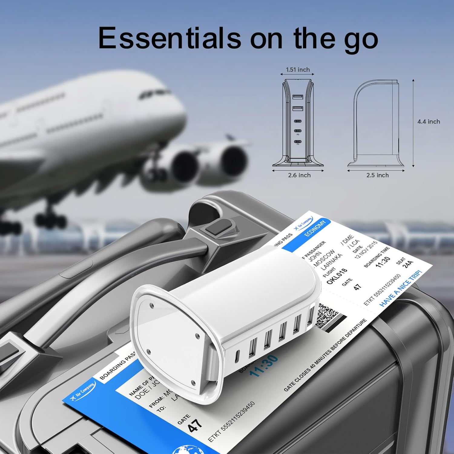 - Compact 6-ports usb charger block: 5 usb + 1 type c port in one, small footprint&lightweight, super space saving for desk organizers and travel with.