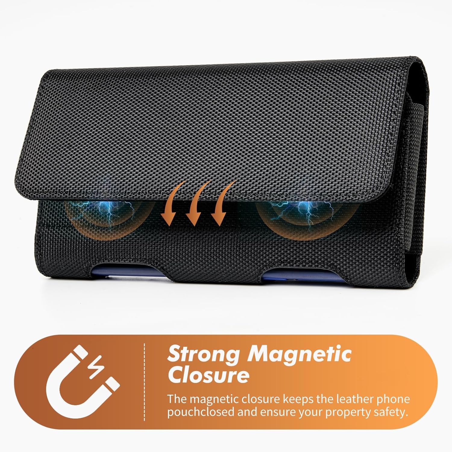 - Durable metal belt clip + 2 additional belt loops for extra security + magnetic closure. Card / ID / Cash Holder Slot - Soft inner lining helps protecting your new phone from scratches