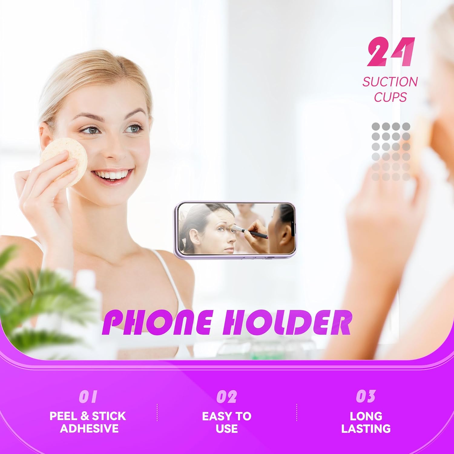 - SECURELY HOLD YOUR PHONE - Experience the convenience and peace of mind of our innovative phone sticky grip. Whether you're using your phone for taking photos or videos or simply need it within easy reach, our phone sticky grip ensures your smartphone stays securely attached to a wide range of surfaces, including mirrors, showers, and windows. Say goodbye to the hassle of searching for your phone or worrying about it falling.