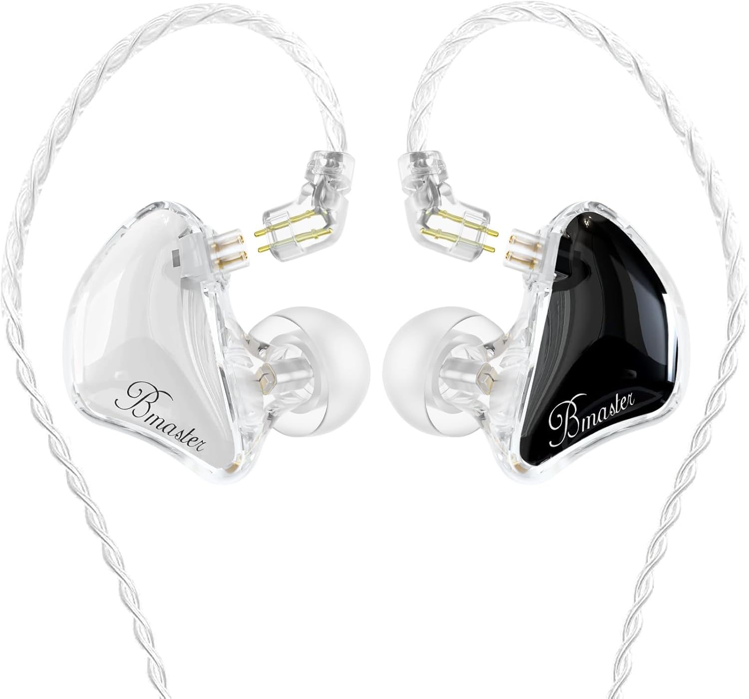 BASN Bmaster Triple Driver in-Ear Monitors Headphones with Powerful Deep Bass, HiFi Stereo IEM Earphones with Upgraded Detachable 2-Pin Cables for Musicians (White/Black, 2-Pin)