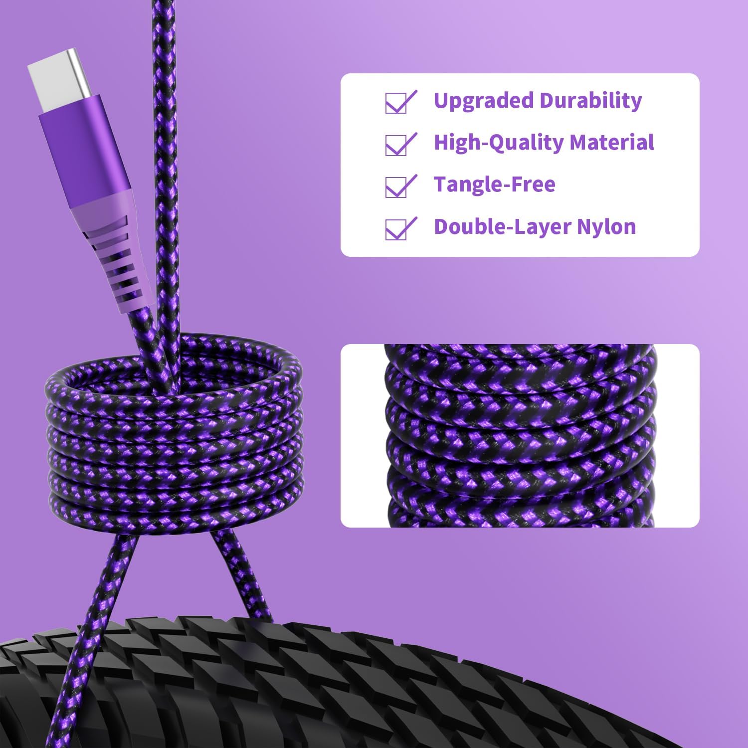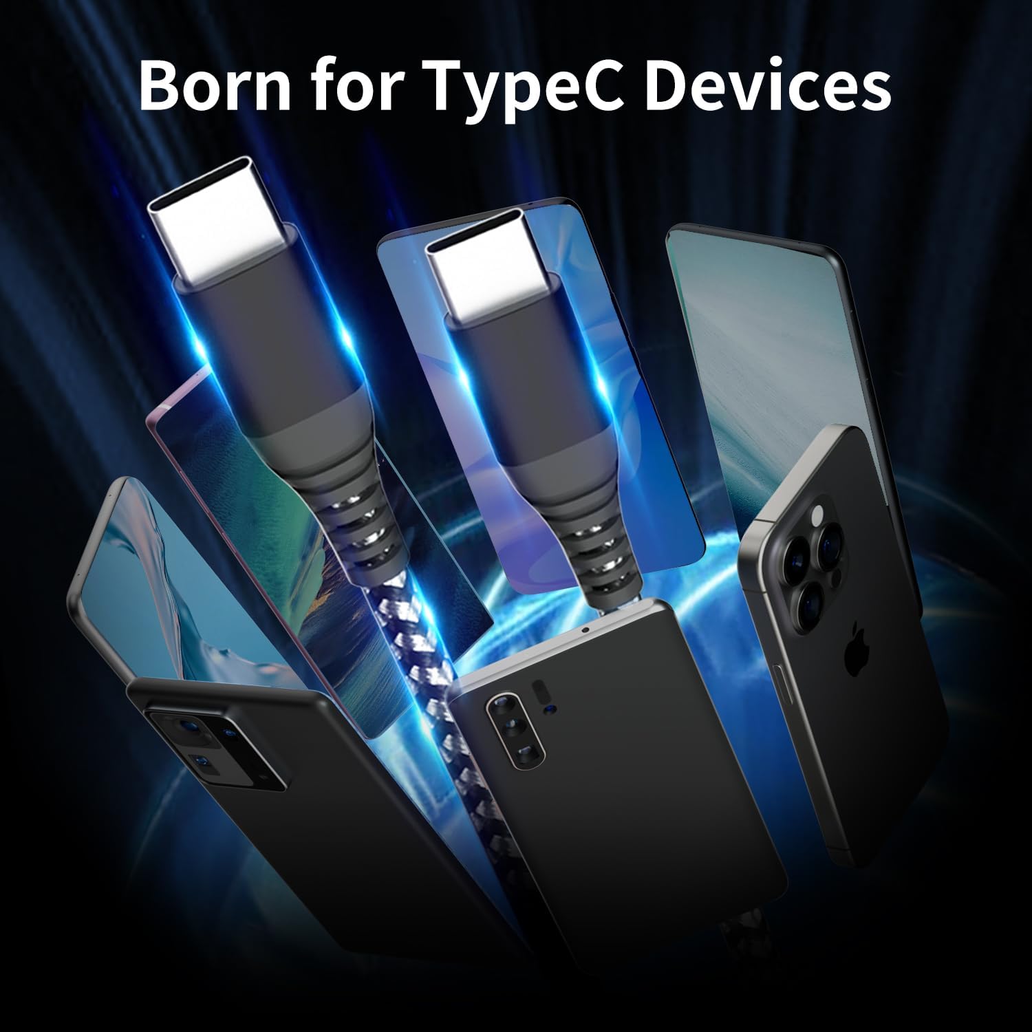 USB C to USB C Cable 60W(3A), Nylon Braided Type-C Charger Cable Fast Charging for iPhone 15 Pro Max Plus/Samsung S23, Switch, Pad and More(3FT 3Pack)
