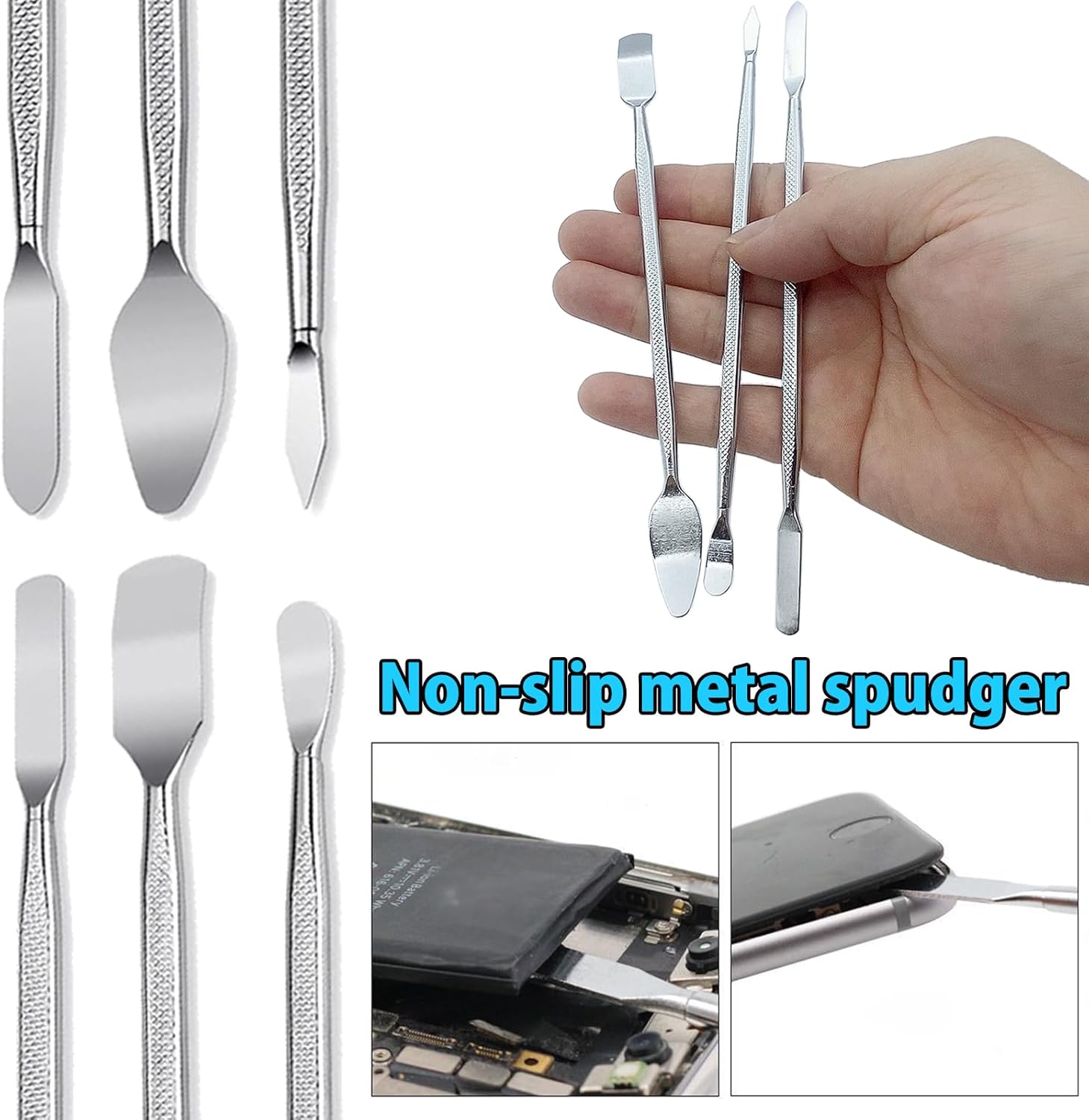 - 【Various disassembly tools】 : This mobile disassembly tool provides different specifications according to different situations of opening the shell. The metal spudger is durable and will not break easily when used. Handles engraved with a special anti-slip pattern protect your equipment from mistakes while working.It is suitable for fine work such as parts adjustment, precision work, and parts disassembly in narrow spaces.