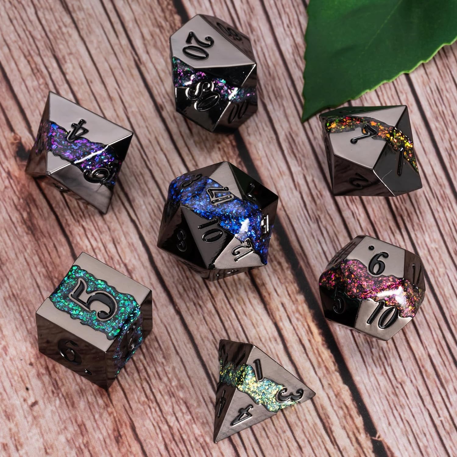 D&D Dice Set Metal,Large Striped Glitter Dice Set.RPG Polyhedral Dice 7pcs Set