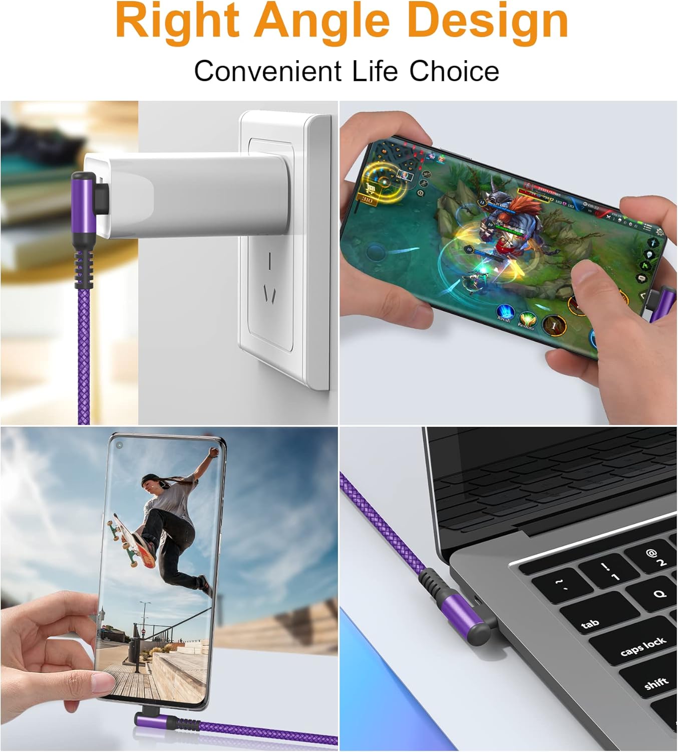 - [Upgraded USB-C Right Angle Design]: This right angle type c charging cable fast charge with an innovative 90 degrees " L " design. It's user-friendly design more convenient and comfortable for playing games, watching videos, reading e-books when you charging.