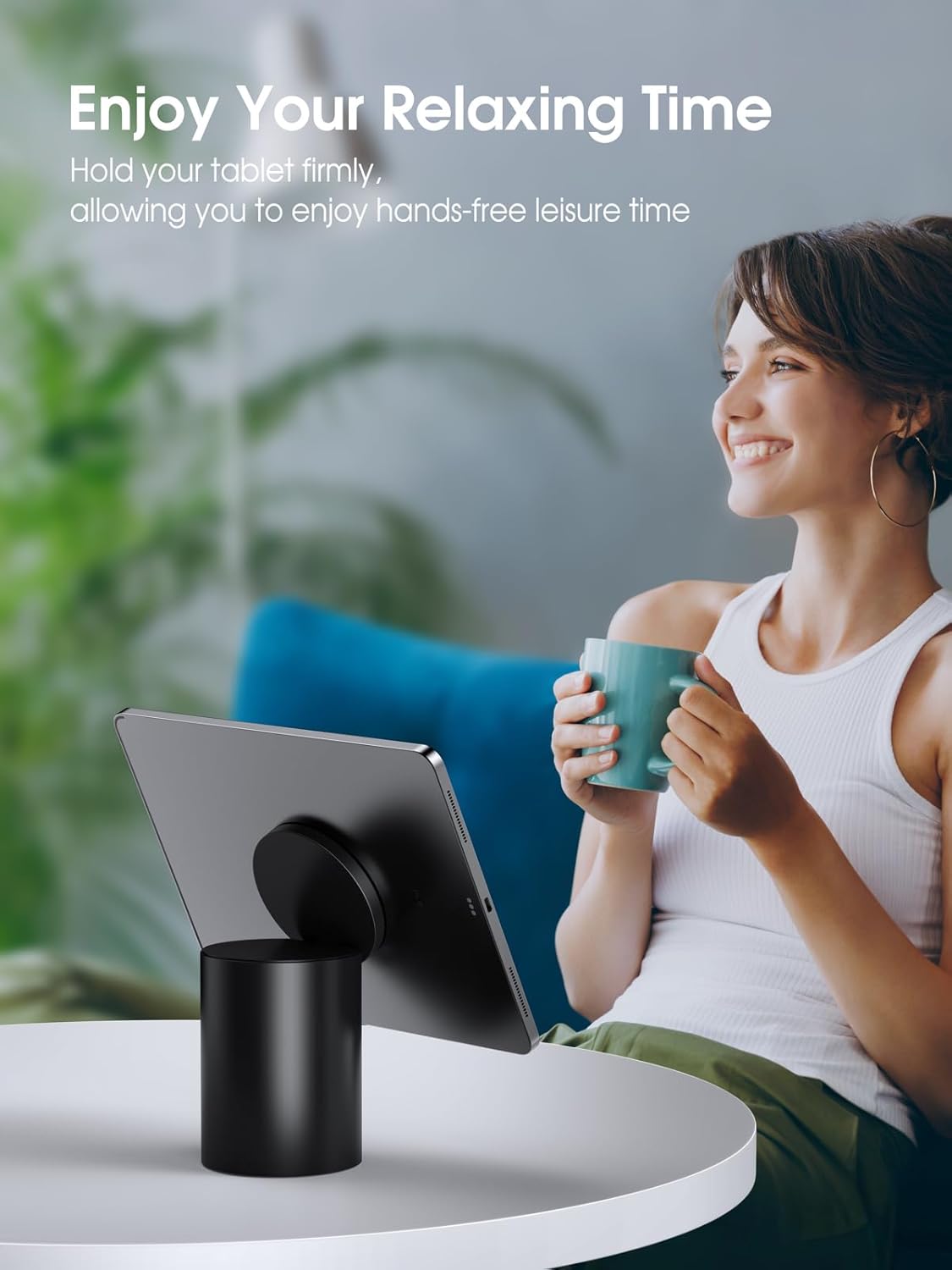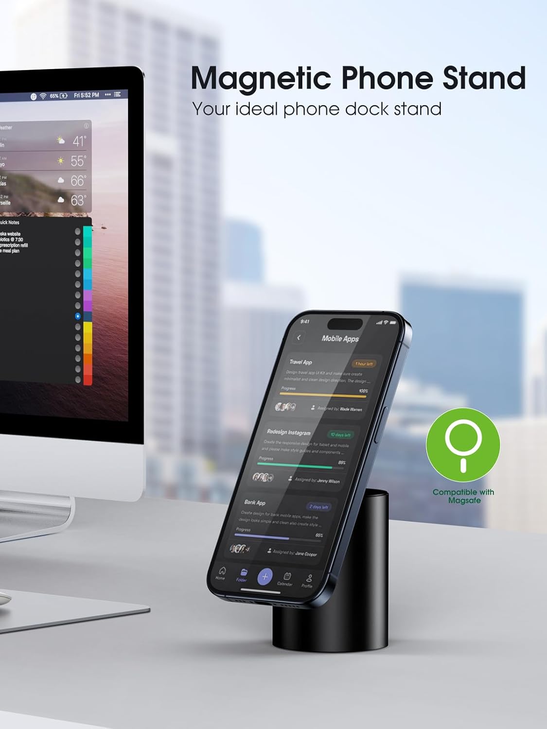- ăWide CompatibilityăFor iPhone 15 14 Pro Max 13 12 series & Magsafe case, you can directly attach your phone to this magnetic phone stand; For others Android phone, tablet, Kindle, iPad mini, iPad air and iPad Pro, stick the included metal ring to your devices and create a MagSafe effect, then attach your device to the phone stand stably and securely.