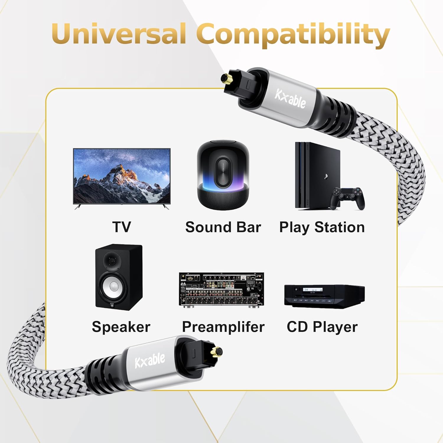 - 【Excellent Sound Quality】: Kxable optical cable perfect for the sound bar to receiver/preamp, DVD, Blu-ray, home theater system, Audio processor, DAC, TV, PS4, Xbox gaming system and more.