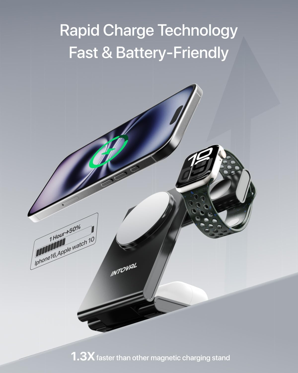 Intoval 3-in-1 Magnetic Charging Station, Travel Foldable Charging Dock for Magsafe iPhone 16 to 12(Plus/Pro/Pro Max), Apple Watch and AirPods, Desk and Bedside Trio Magnetic Stand (M5,Black)