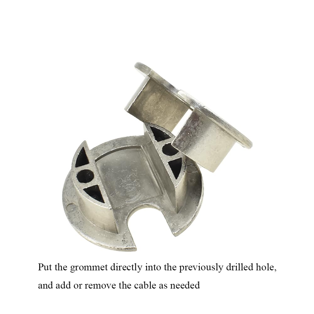 - Package:You'll receive 2 brushed silver wire grommet in your package. These stylish and sturdy wire organizers not only elevate the aesthetics of your workspace, but also keep your cables and cords neatly organized. Don't hesitate—add them to your shopping cart now for a clean, clutter-free work area!