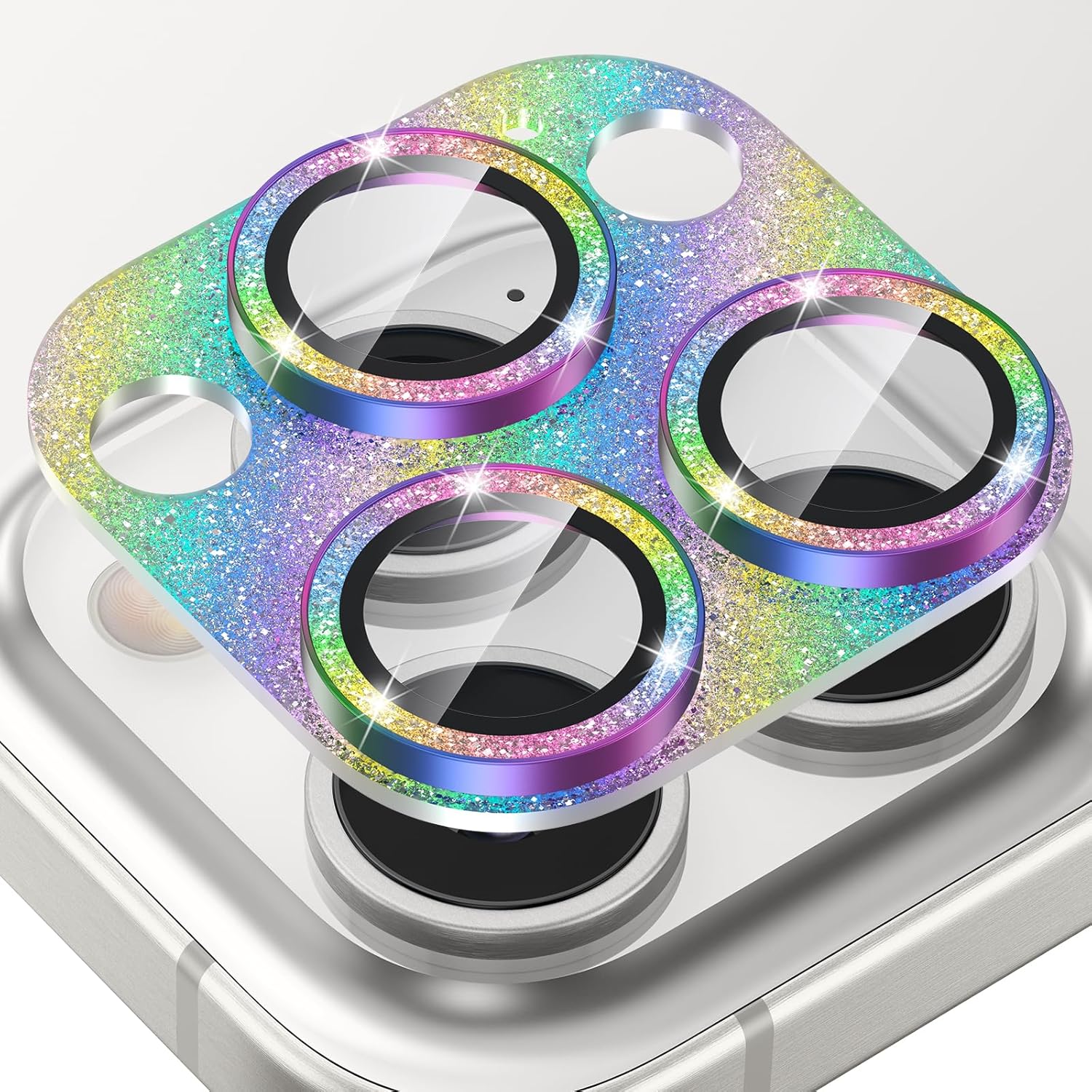 - Glitter Texture: Upgraded tempered glass camera screen protector cover built-in 3 single metal ring protector, which bling glitter reflects fascinatingly. It protects lens also makes it personalized decorations. Many colors are available for you to choose