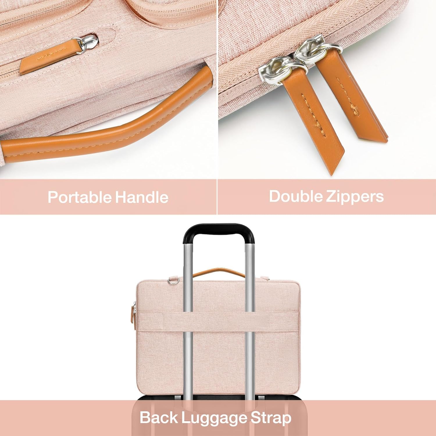 - Removable and adjustable padding shoulder strap with a shoulder pad varied from 28.54 inch to maximum 52.56 inch. Extendable PU handle design makes it to carry your laptop around in comfort, you can also tuck away the handle. Considerate design is the back trolley suitcase belt for ease use during business trip. It is really convenient for your happy journey to any where.