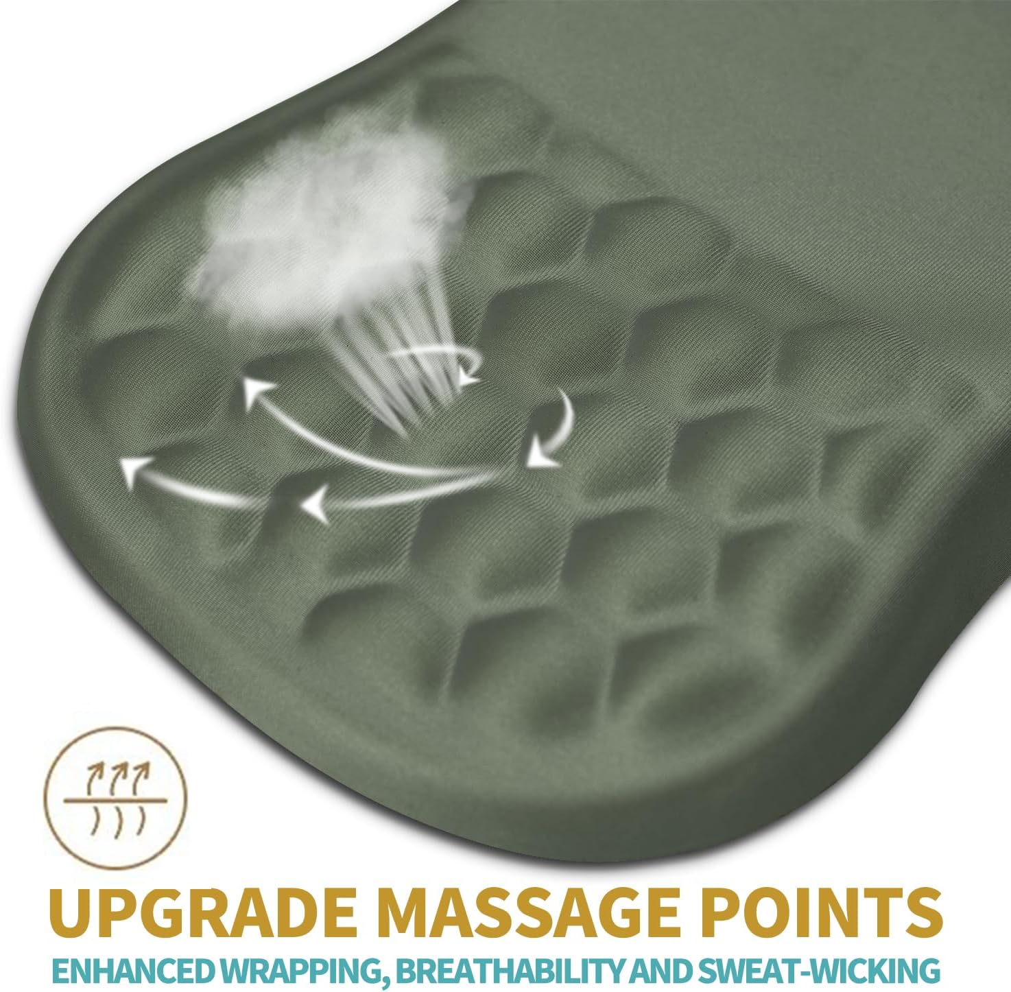 Hokafenle Ergonomic Mouse Pad Wrist Support with Massage Design, Wrist Rest Pain Relief Mousepad with Memory Foam&Non-Slip PU Base, Mouse Pads for Wireless Mouse & Desk (12x8 inch,Olive Green)