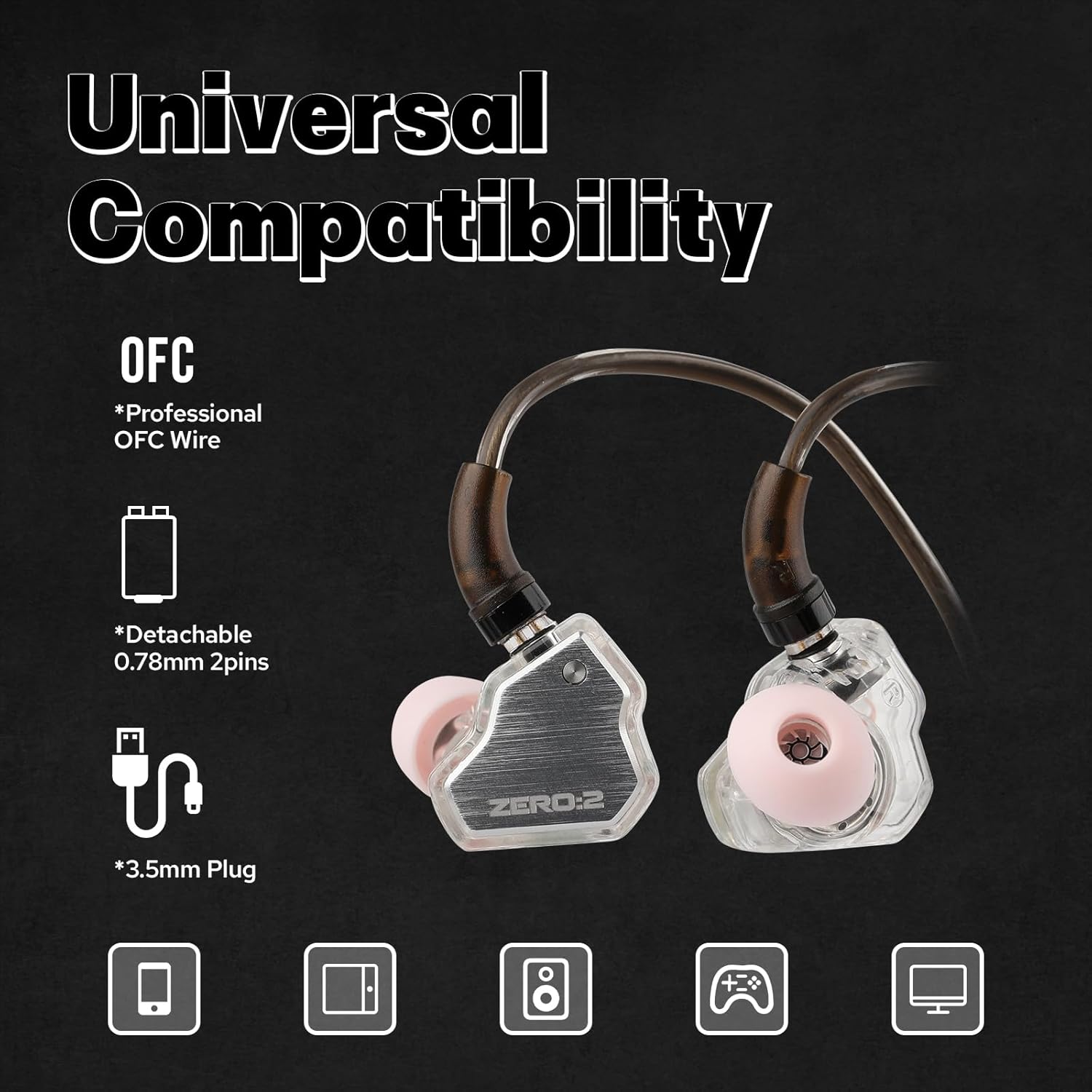 - ใ๐๐ฆ๐ฉ๐ซ๐จ๐ฏ๐๐ ๐๐ฎ๐ฌ๐ญ๐จ๐ฆ ๐๐๐๐ฅ๐ใThe Zero:2 has been upgraded with a new high-purity oxygen-free copper cable with silver plating. Arranged in a coaxial structure, each wire is woven with 140.06 and 250.06 winding to strengthen the cable, as well as bringing about better audio transmission. The cable is removable to customize your listening experience as well as enhance the longevity of your IEM.