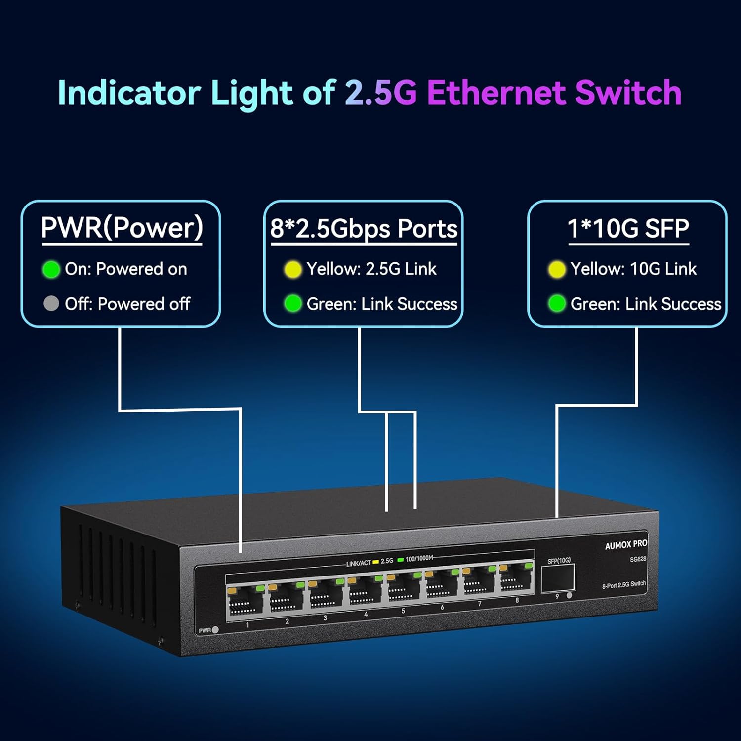 9 Port 2.5Gb Unmanaged Ethernet Switch with 8* 2.5G Base-T Ports, 1*10G SFP Ports, AUMOX PRO 60Gbps Switching Capacity Compatible with 100/1000/2500Mbps Plug and Play
