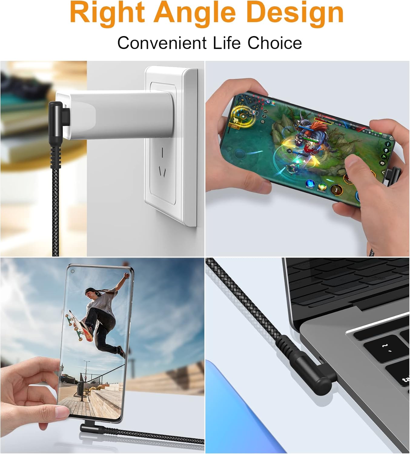 - [Upgraded USB-C Right Angle Design]: This right angle type c charging cable fast charge with an innovative 90 degrees " L " design. It's user-friendly design more convenient and comfortable for playing games, watching videos, reading e-books when you charging.