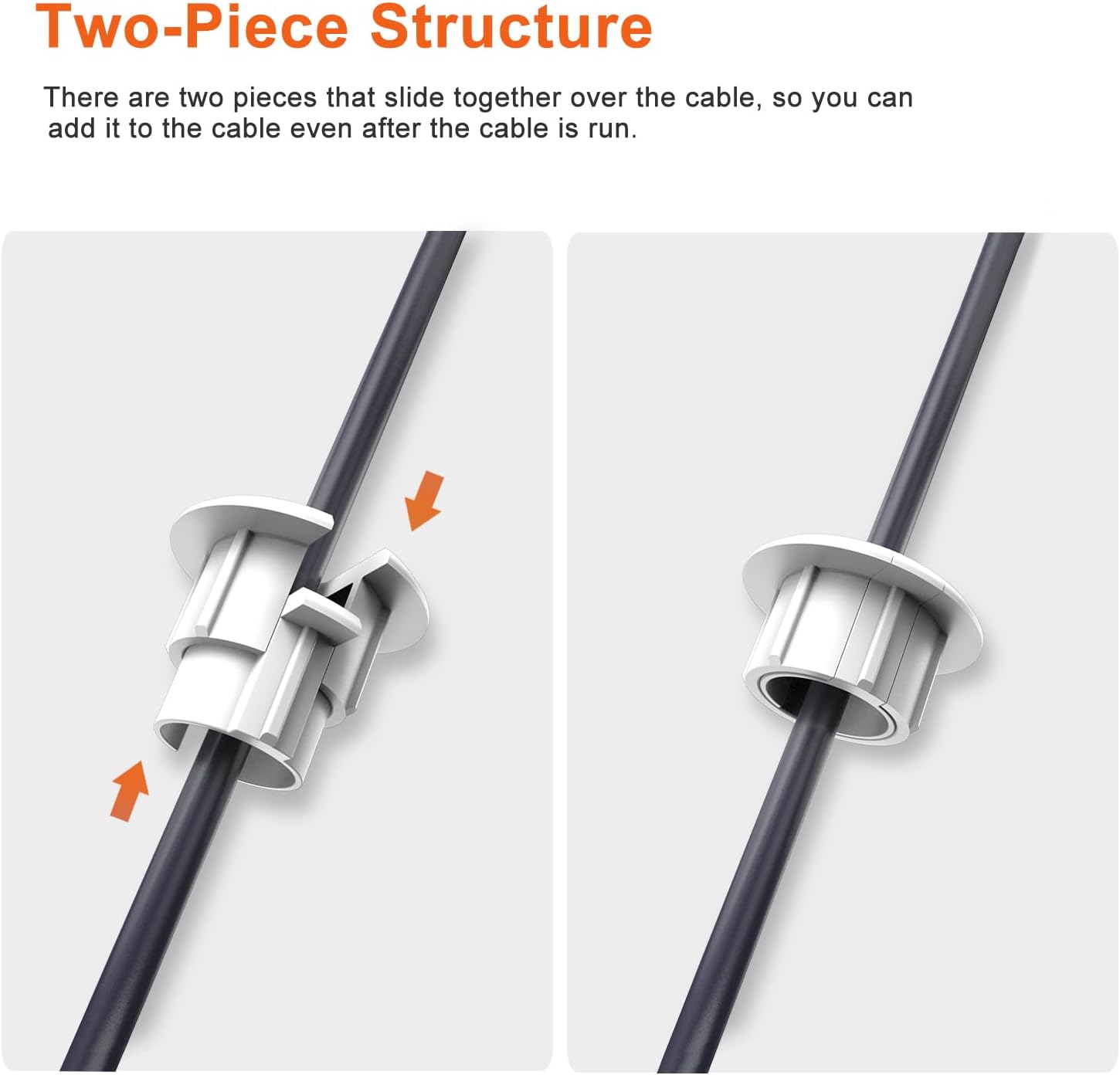- Sactulaz cable pass through wall/desk grommets are made of reliable and sturdy hard plastic. Cable hole covers can be installed both exterior and inside wall.