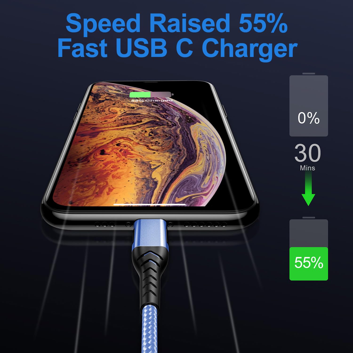- √【Certified Safety & Enhanced Durable 】: This Type c cable has electronic safety certifications that comply with appropriate standards, you have no need to worry about this cable quality at all. The USB c fast charging cable cord can bear 10000+ bending test. Premium Aluminum housing makes the cable more durable,nylon braided type c cable adds additional durability and tangle free.