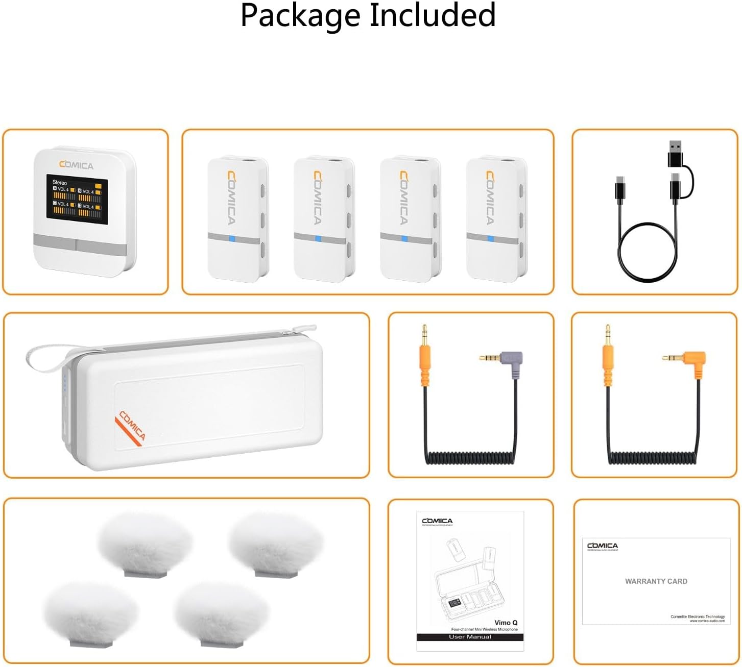 comica Vimo Q Four-Channel Mini Wireless Lavalier Microphone System with 4 Transmitters and 1 Receiver-White