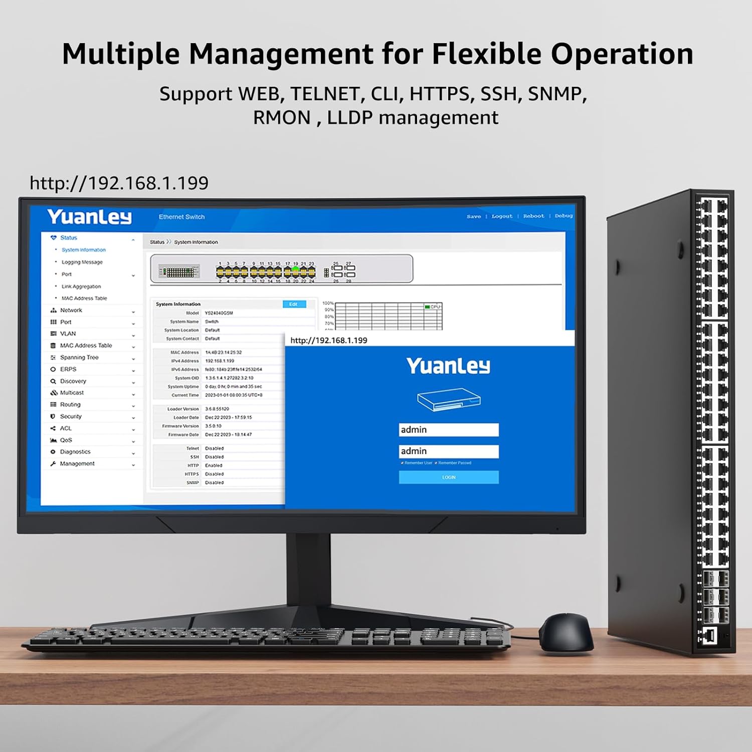 - 【Multiple Applications】YuanLey managed switch is designed exclusively for the networking needs of growing businesses, with an extensive suite of management and security features available. These devices are cost-effective for small and medium-sized businesses, providing ideal solutions for a variety of network scenarios. It can be widely used in small and medium enterprises, Internet cafes, hotels, schools and other Ethernet access scenarios.