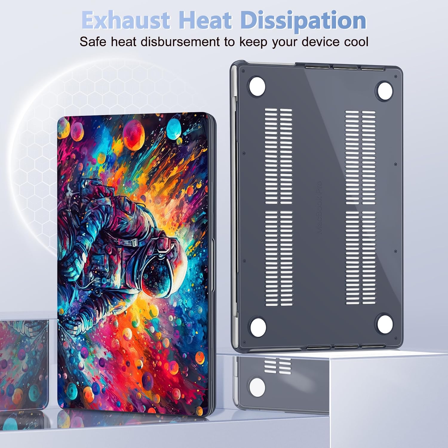 - Exhaust heat dissipation: Two rows of bottom ventilation and four anti-slip silicone rubberized feet, it can keep your device firmly in place all the time, Featuring of bottom ventilation, allowing safe heat disbursement to keep your device cool, Featuring all-inclusive design to fully protect your device from drops, downs, scratches, etc from daily using