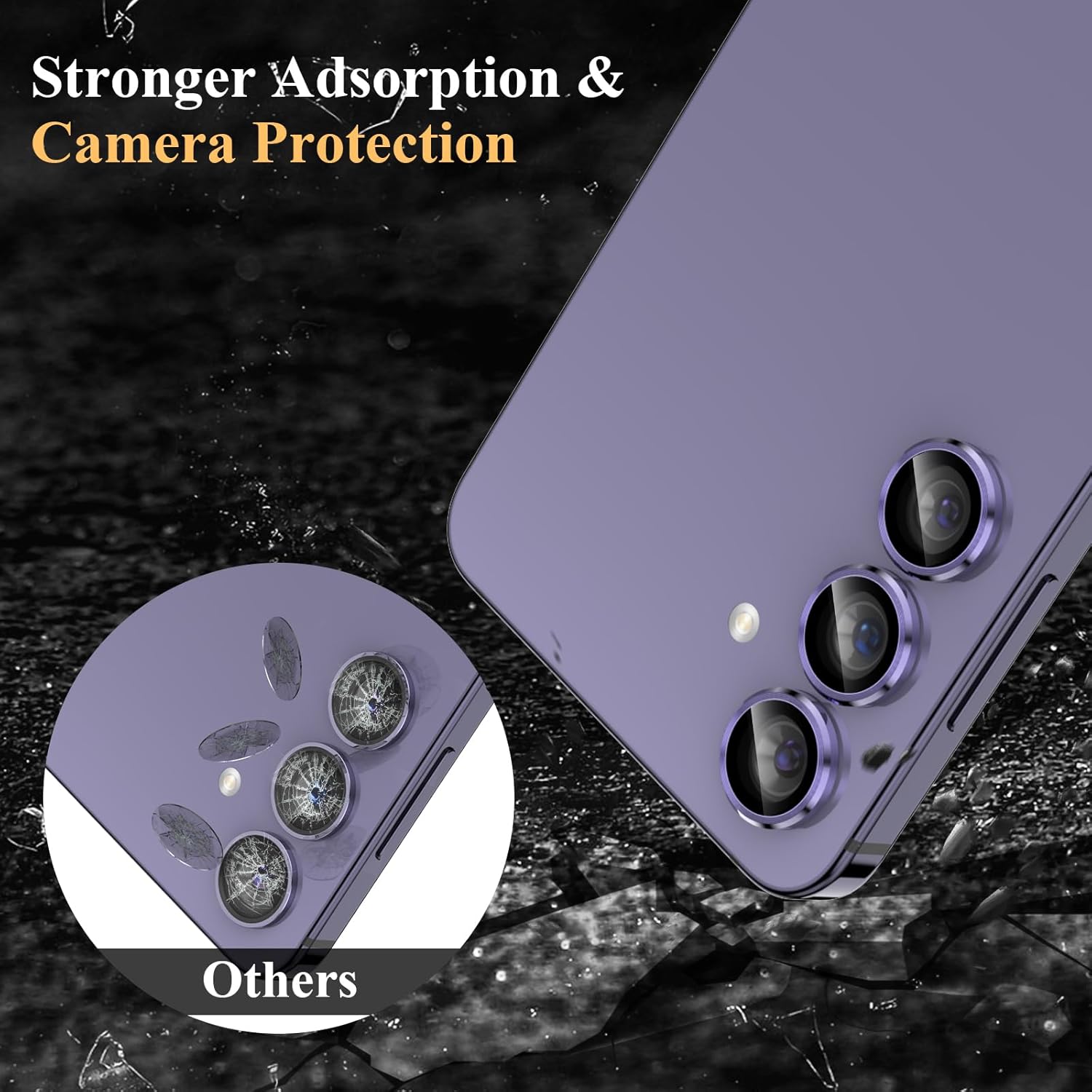- Pro Camera Protection: The premium 9H tempered glass of Samsung Galaxy S24 Plus camera lens protector protects your camera lens from daily damage and scratches. The metal ring perfectly covers the edge of the phone lens, providing excellent full coverage protection and sealing for the camera lens. Do not worry about water, oil stains or dust entering the lens surface.