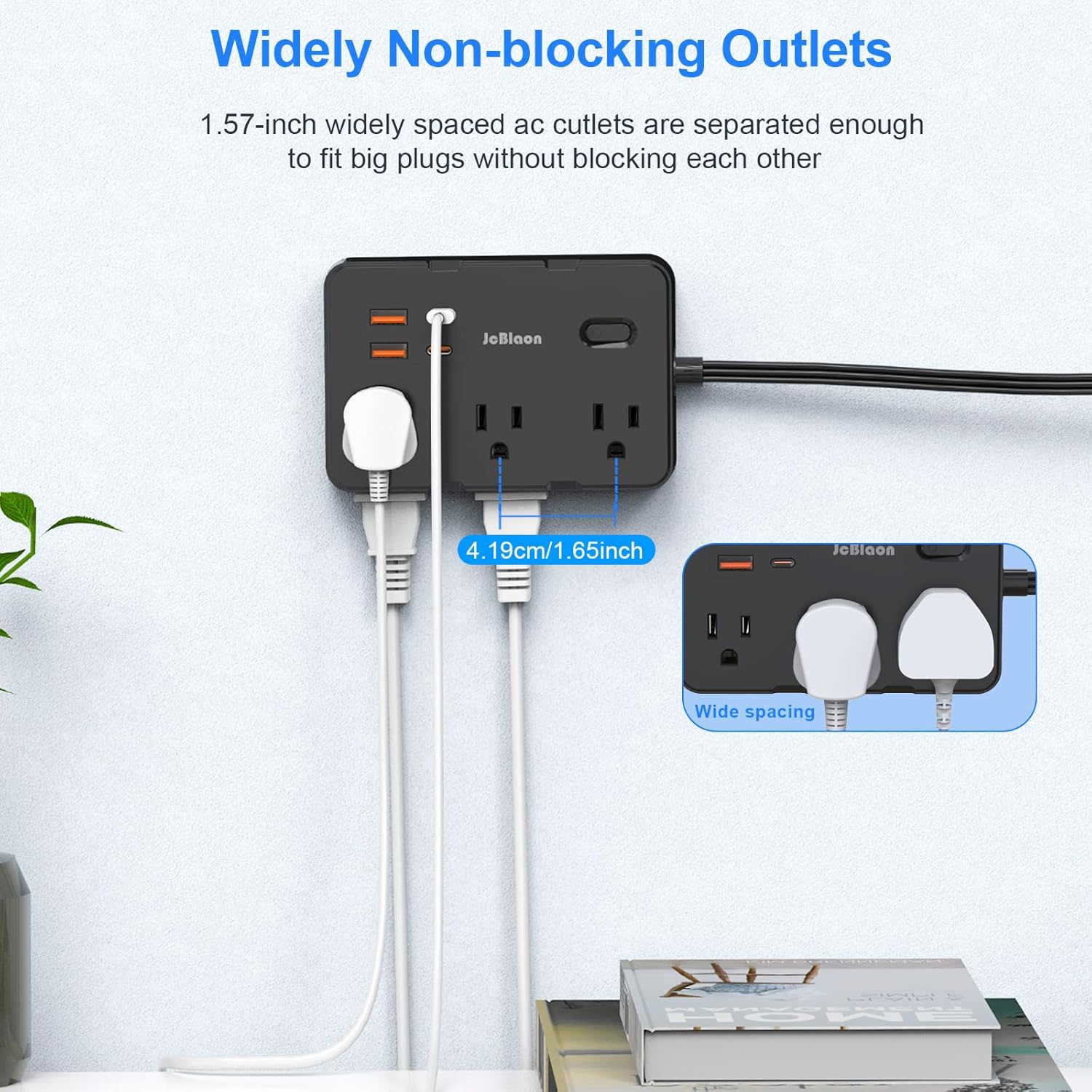 - 【2 USB C Charging Station】 Added dual USB C ports to meet different charging need, the power strip with 2 USB C port and 2 USB A Port, can charge up to 5V/2.4A Max. With smart charging technology, the outlet extender can auto-detects your devices and reach faster charging efficiency, perfectly fit for your iphone, ipad, tablet, bluetooth earphone etc.
