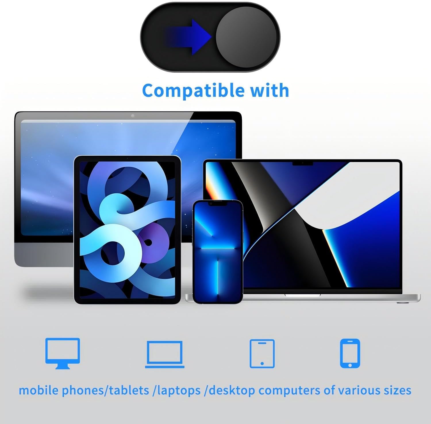 - 0.022in Thin design makes it compatibility with MacBook Pro 15 inch / 13 inch Version, MacBook Air 13 inch Version, other Laptops(AS: Hp, Dell, Asus), iPad Pro/ iPad Air/ iPad mini, Tablets, PC, Computer and more. Simply align to your webcam, attach and press firmly for 15 seconds for a strong, but non-permanent seal.