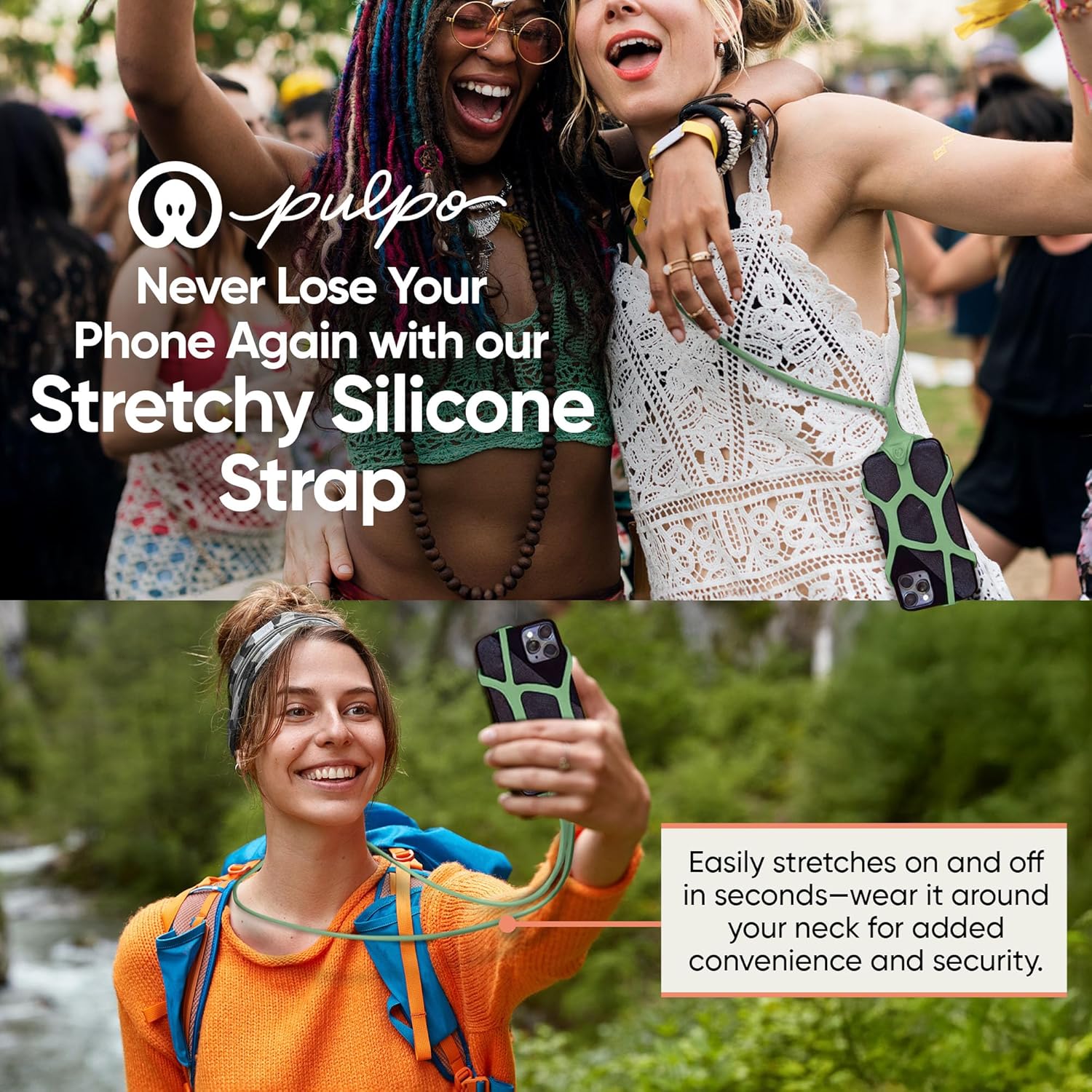 - QUICK ON & OFF WITH STAINLESS-STEEL CLIP: The Pulpo phone leash and travel phone holder is designed for effortless attachment and removal, allowing you to stay connected without hassle. Whether hiking, biking, kayaking, or commuting, our travel security accessories keeps your phone secure and within reach, ensuring you never miss a moment while keeping it protected. The festival phone leash and harness features add versatility, making it a must-have for those who thrive on active lifestyles.