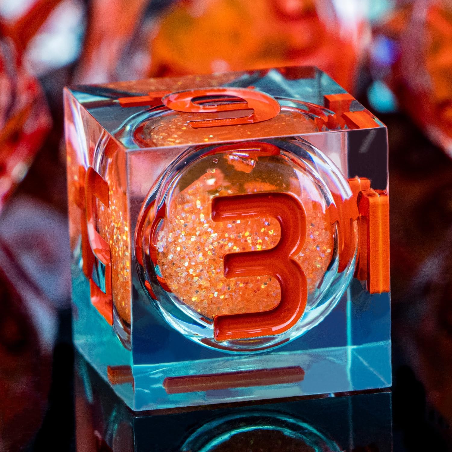 ARUOHHA Liquid Core DND Dice Set, 7pcs Resin Sharp Edged Dragons Dice Role Playing Games, RPG Orange Dungeons Polyhedral Dice with Gift Box D20 D12 D10 D8 D6 D4
