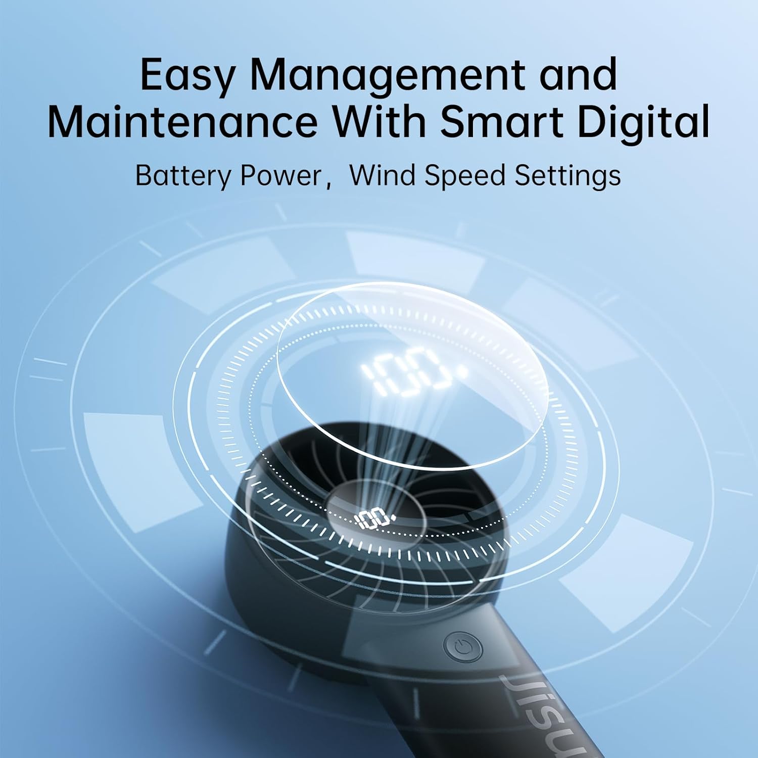 JISULIFE Handheld Portable Fan with Powerful Motor,LED Display,3600mAh Battery,5 Wind Speeds,Lanyard; Summer Essentials USB Rechargeable Hand held Fan for Travel,Beach,Makeup,Concerts-Black