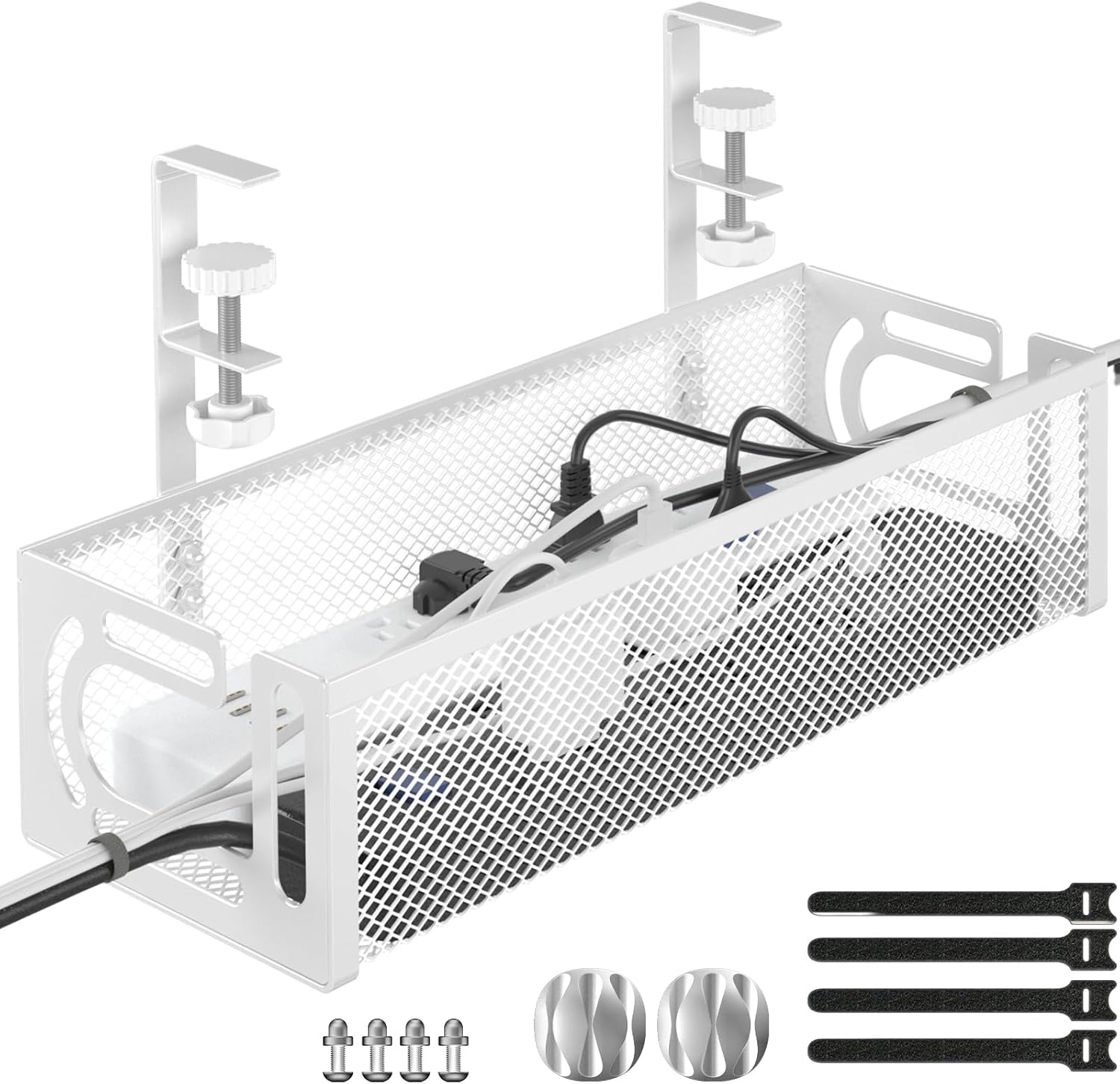 - 【No Drilling Installation】Assembling Foellstoe cable management box is a breeze and takes only 3 minutes or less. The side clamps easily grip the edge of your desk, passing through the side holes, and the basket secures any excess cables.