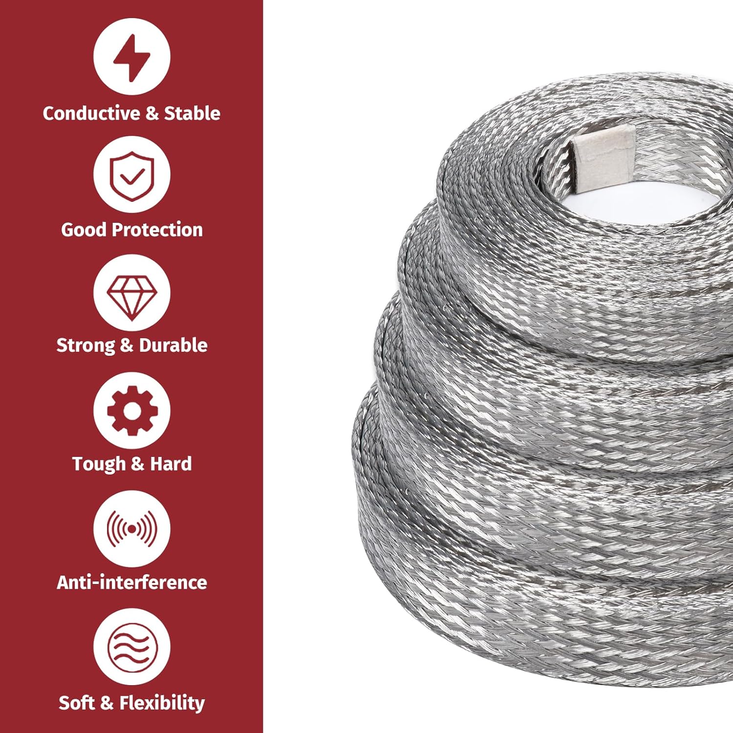 - EMI/RFI Wire Shielding Sleeves: Our flat tinned copper braid sleeve provides good shielding performance to reduce EMI and RFI noise and unwanted electrical noise that covers wires. It is ideal for AC/DC connections for amateur radio stations and shielding short-wire cables.