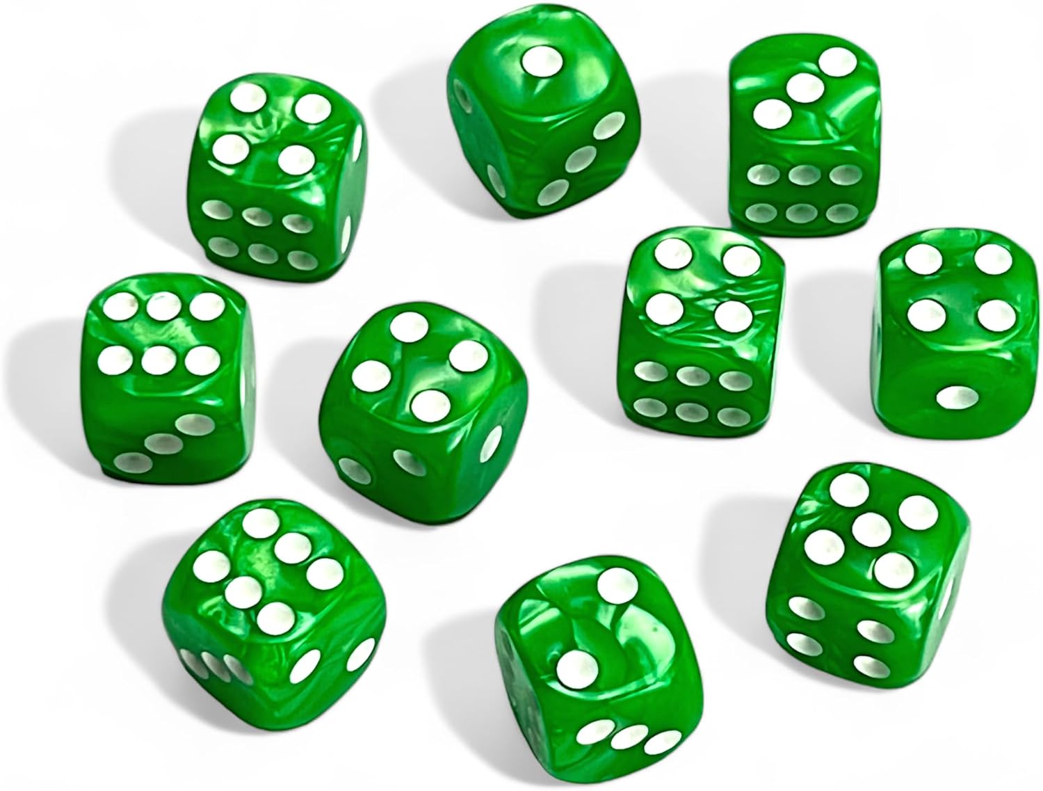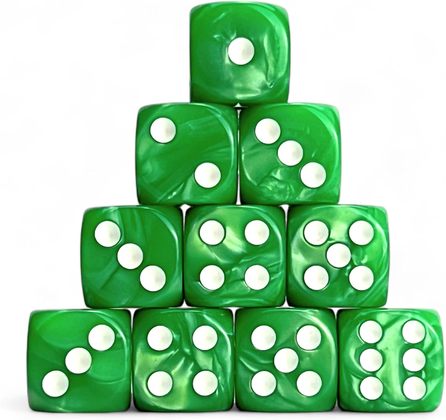 Luck Lab 10-Piece Acrylic D6 Dice Pack - Green Pearl (16mm, Hexahedron) for RPG, MTG, DND, Table Games