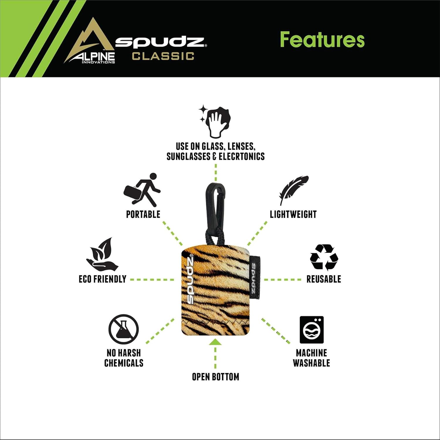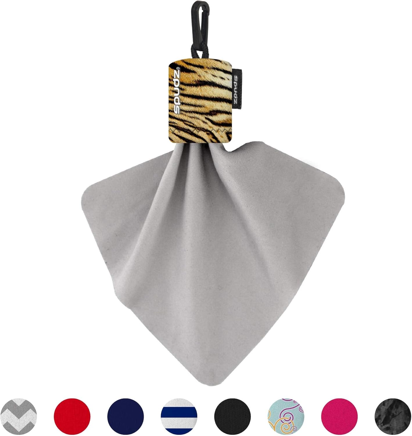 SPUDZ Classic Microfiber Lens Cleaner – Clip-On Pouch, Washable – for Binoculars, Scopes, Glasses, Screens | Tiger, 6 x 6 Inch (3-Pack)