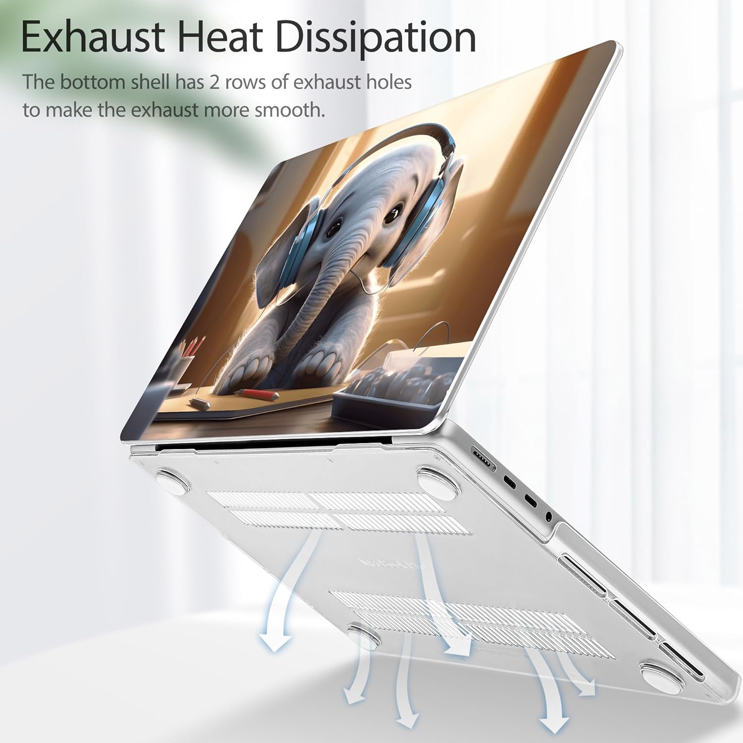 Tuiklol for M4 MacBook Pro 14 Inch Case 2024-2021 Release A3112 A3401 A3185/M3 A2918 A2992/M2 A2779/M1 A2442 Pro/Max Chip,Hard Shell Case with Screen Protector for Touch ID, Elephant