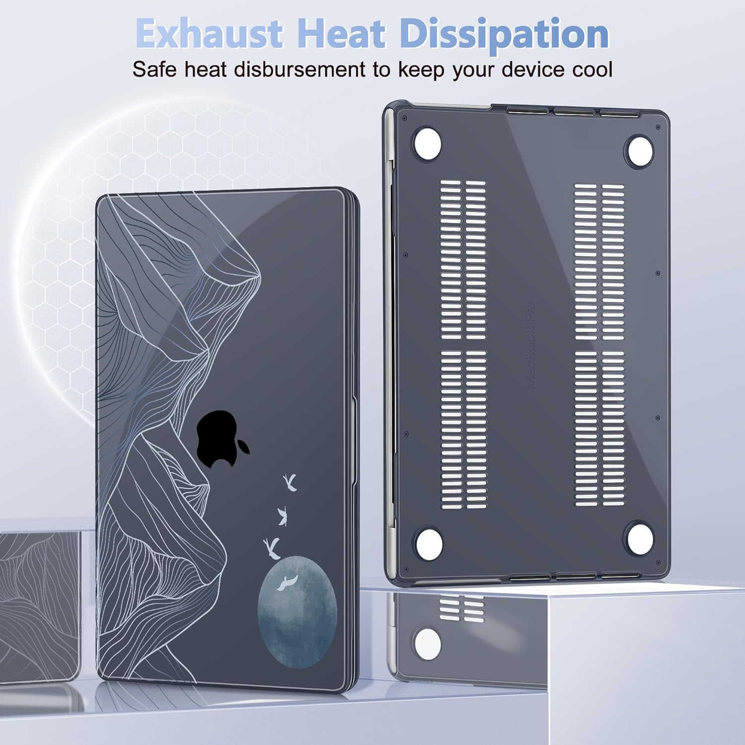 - Exhaust heat dissipation: Two rows of bottom ventilation and four anti-slip silicone rubberized feet, it can keep your device firmly in place all the time, Featuring of bottom ventilation, allowing safe heat disbursement to keep your device cool, Featuring all-inclusive design to fully protect your device from drops, downs, scratches, etc from daily using