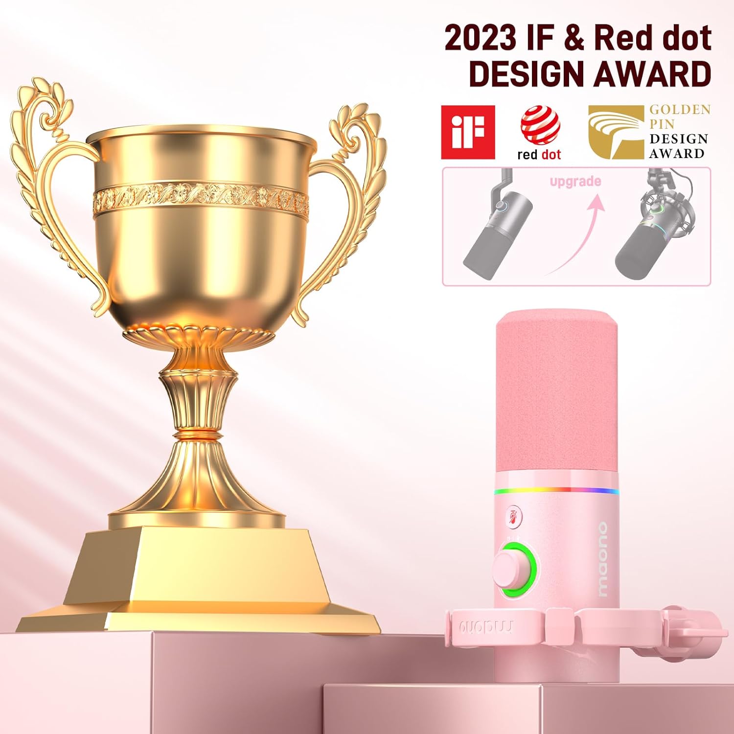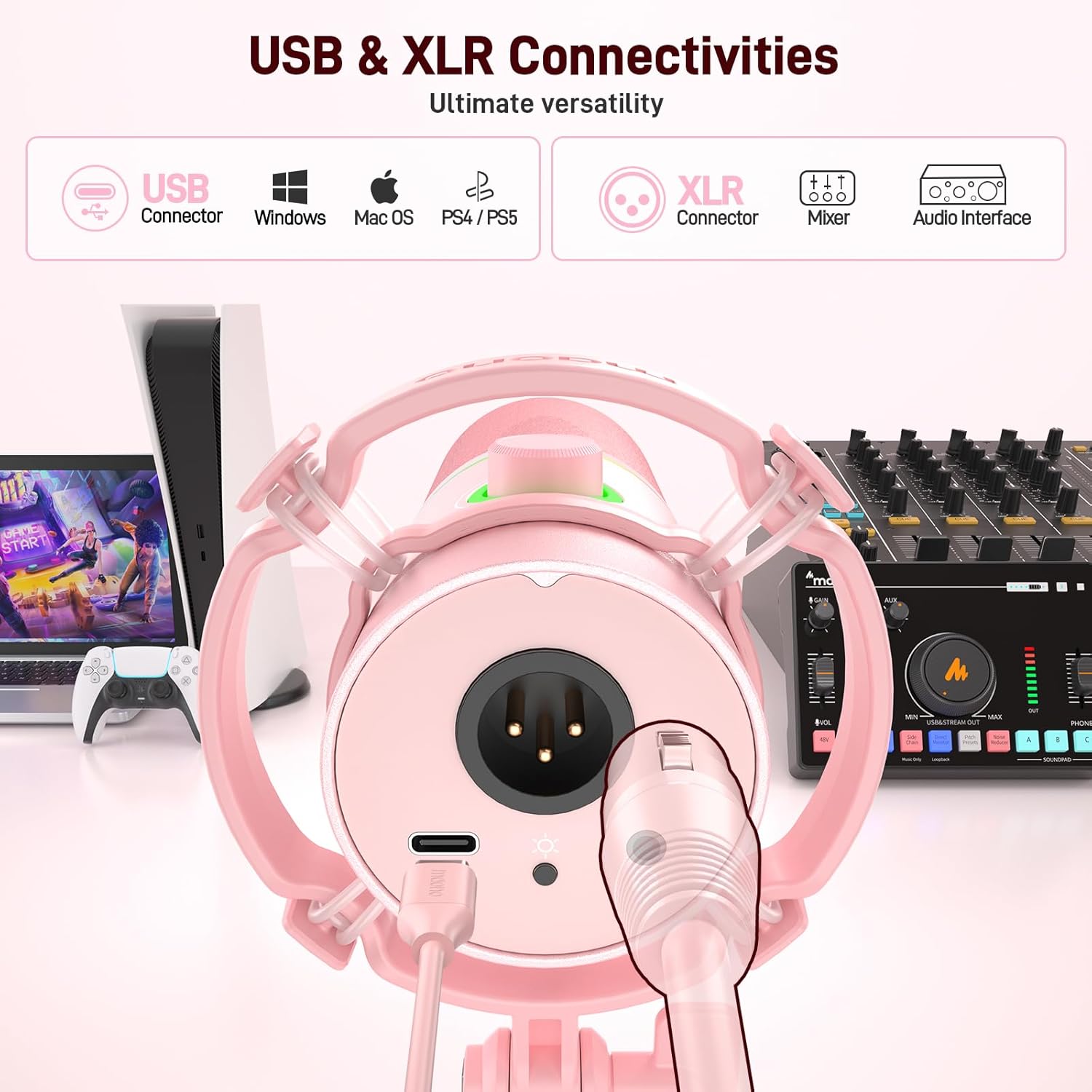 MAONO XLR/USB Dynamic Microphone Kit, RGB Gaming Mic with Software, Mute, Gain Knob, Volume Control, Boom Arm for Streaming, Podcasting, Voice-Over, Recording-PD200XS Pink