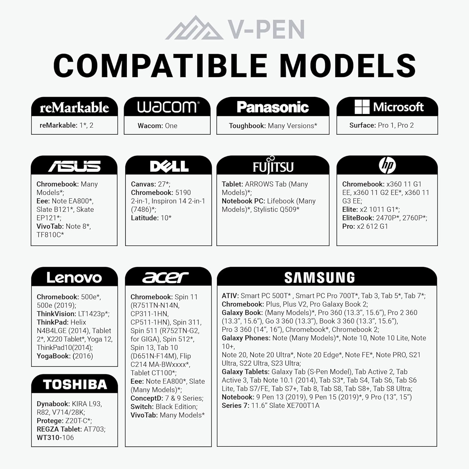 - Natural Writing Experience: Enjoy the feel of pen on paper with our Stylus Pen's 4096 pressure sensitivity levels. Whether you're taking notes, sketching, or navigating, the smart v-Pen delivers precise control for a natural writing experience.
