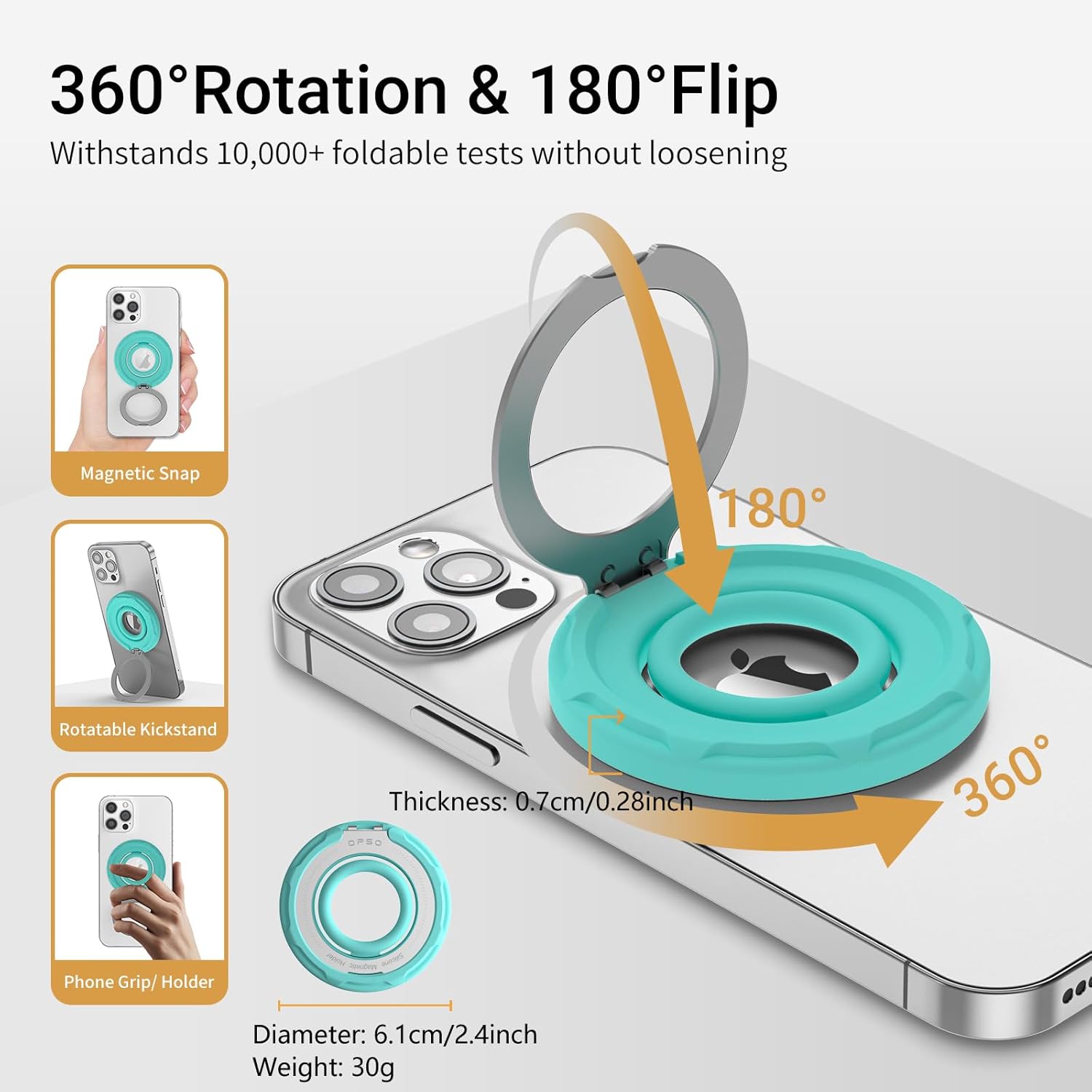 - 🧲【360°Rotatable & 180°Adjustable Magnetic Ring Holder for iPhone】The magsafe phone grip has a multi-angle adjustable kickstand that is 360° rotatable and 180° foldable, providing a comfortable viewing angle. Supporting both horizontal and vertical screens can be adjusted to your perfect angle. You can place It on your office desk, kitchen counter, or table to watch videos, movies, YouTube, TikTok, take a selfie, or Facetime someone. Free your hands for multitasking!