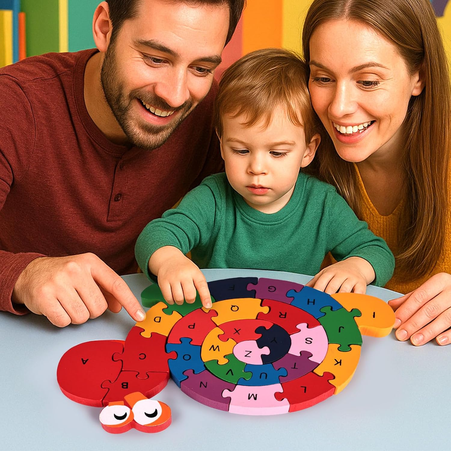 LovesTown Wooden Alphabet Snail Jigsaw Puzzles, Montessori Letters Numbers Building Blocks, Educational Learning Toys for Kids Preschool Activities